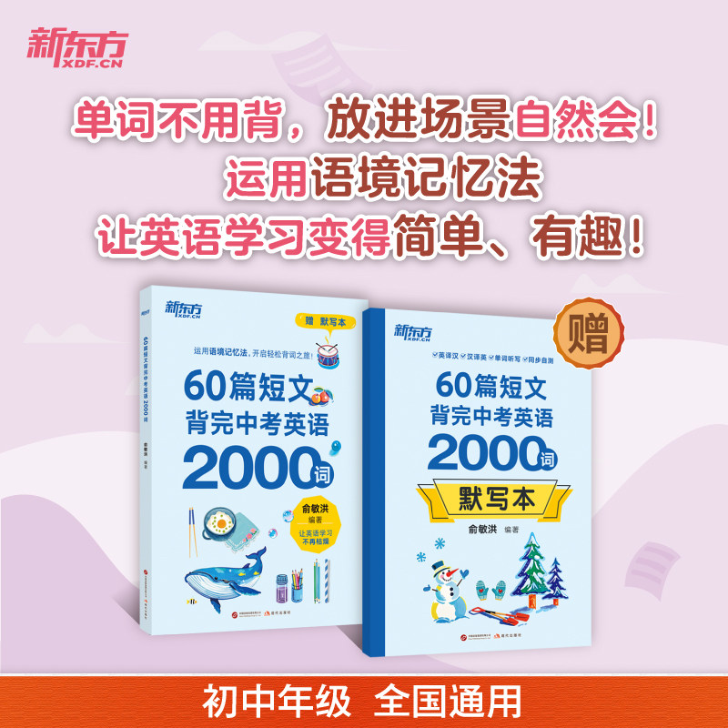 📚 现货包邮 新东方60篇短文背完中考英语2000词初中通用全国中考真题及期末考试题初一初二初三词汇量知识面双提升配套音频巩固学习