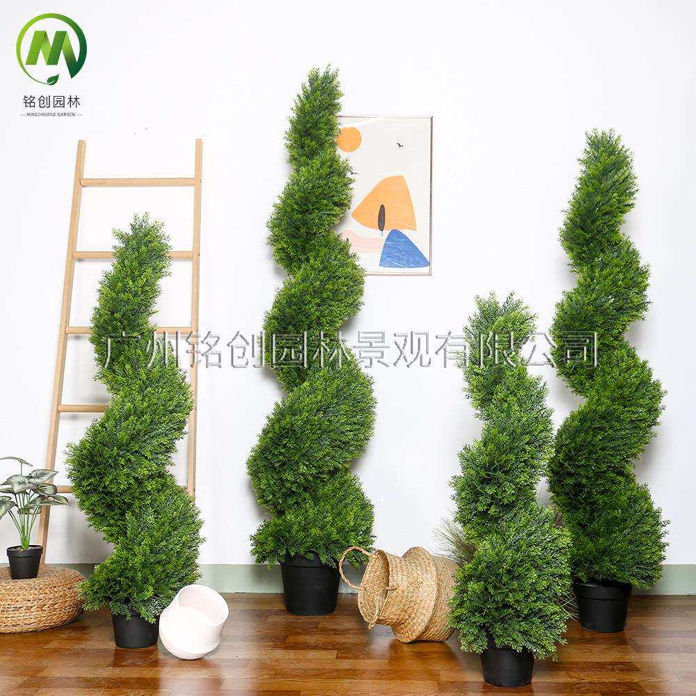 📚 室内外松柏树叶仿真螺旋树盆栽 跨境亚马逊爆款仿真蛇形米兰树
