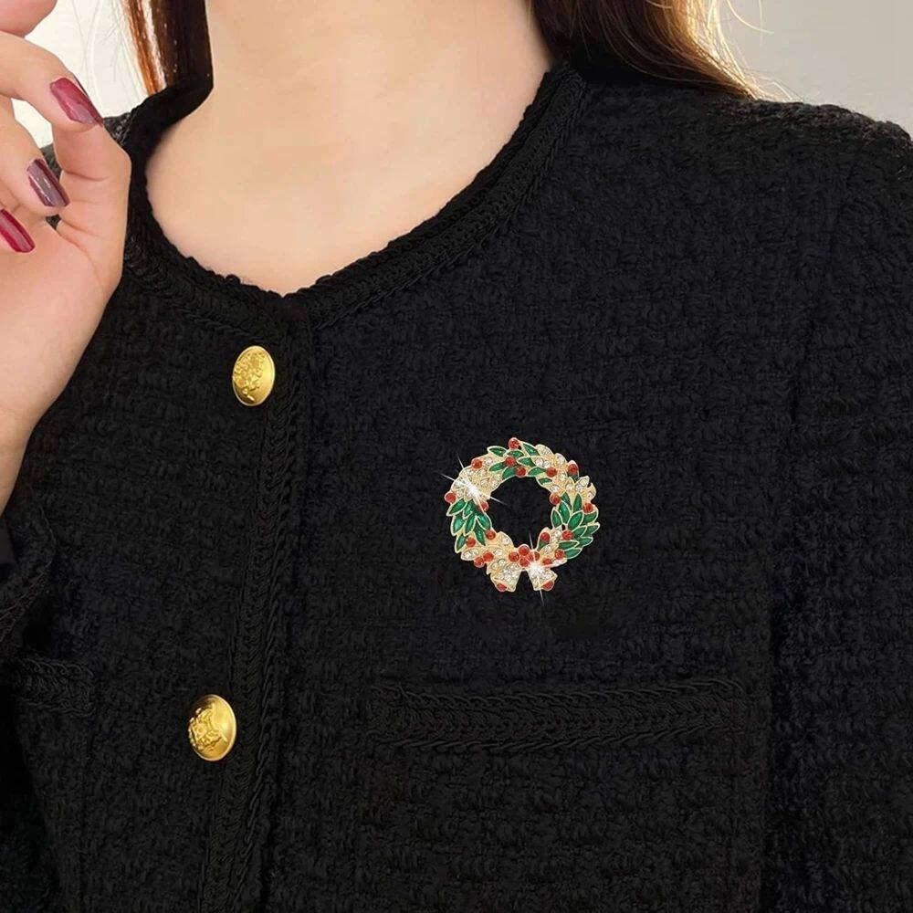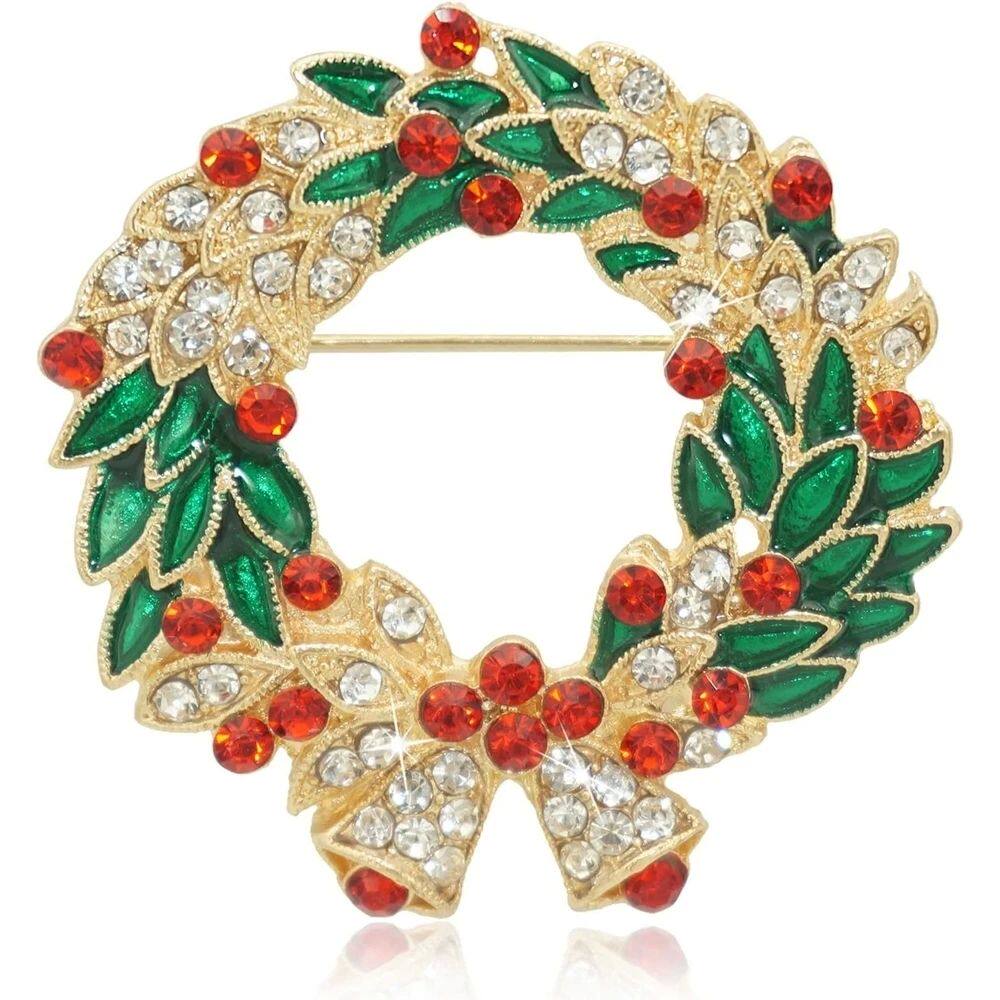 📚 New Enamel Rhinestone Bells Christmas Wreaths Brooches Holid