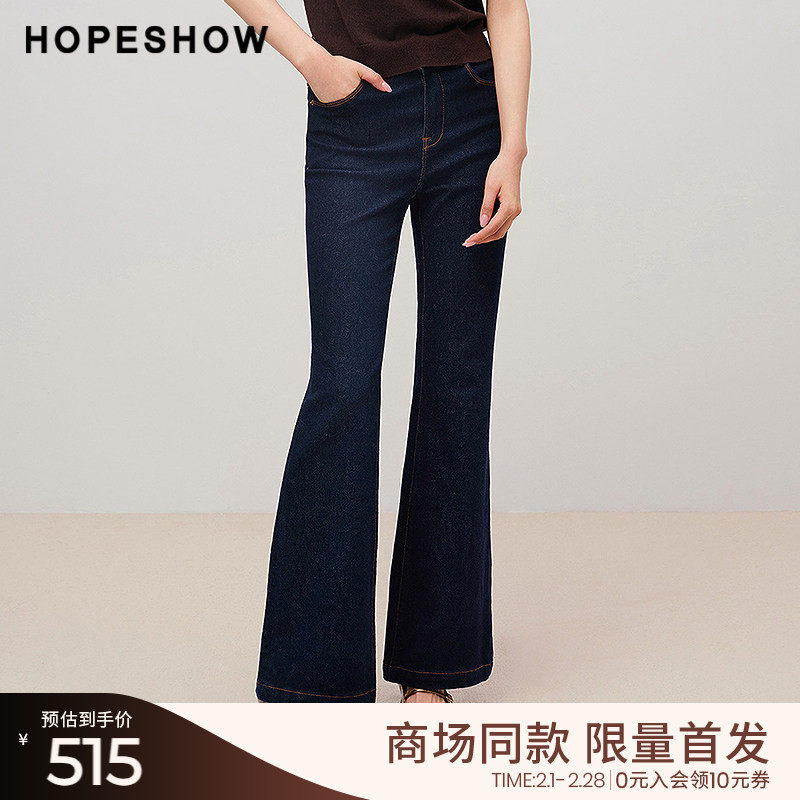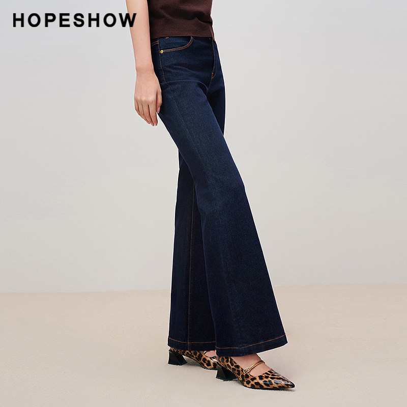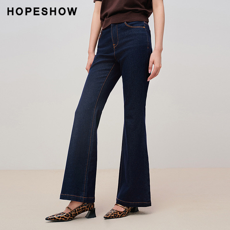 📚 红袖商场同款HOPESHOW2025秋新款女装复古水洗拉链微喇牛仔长裤