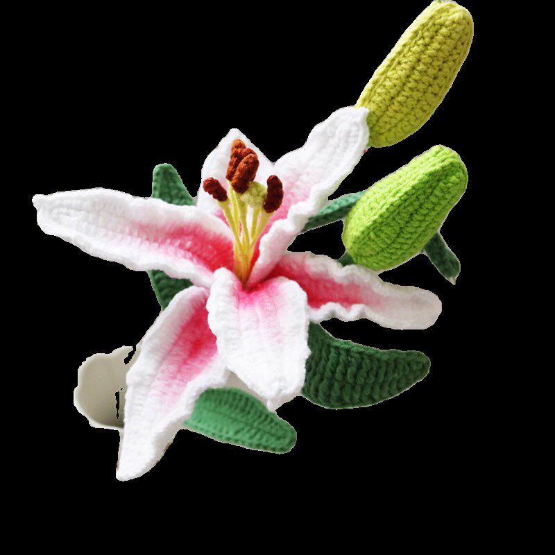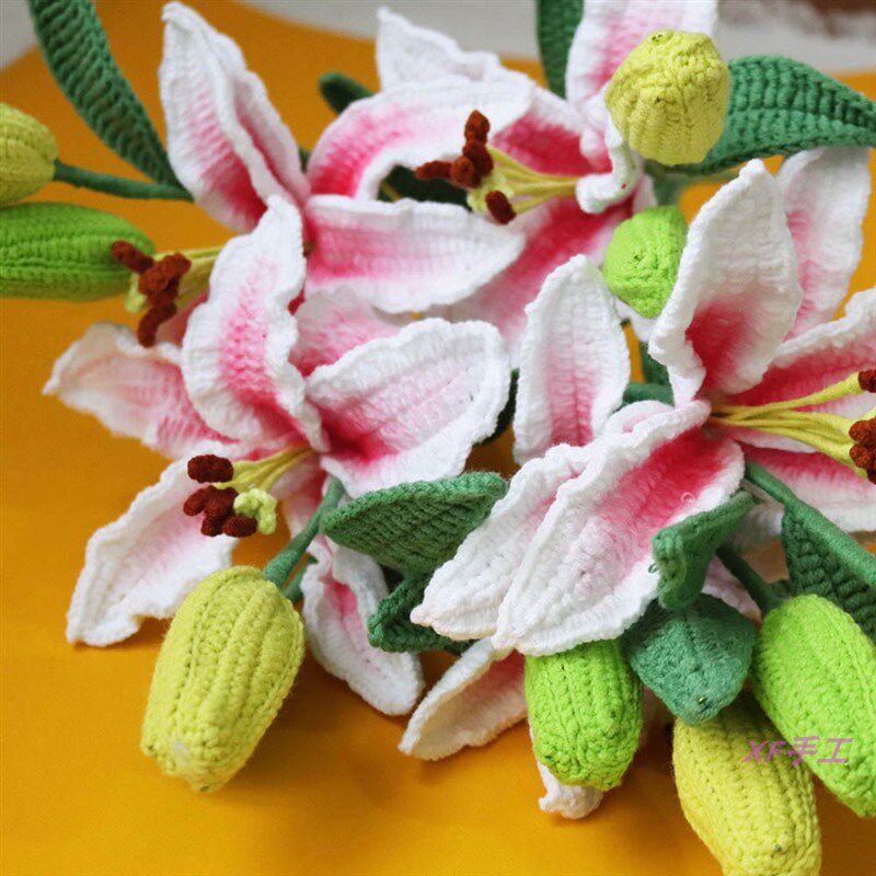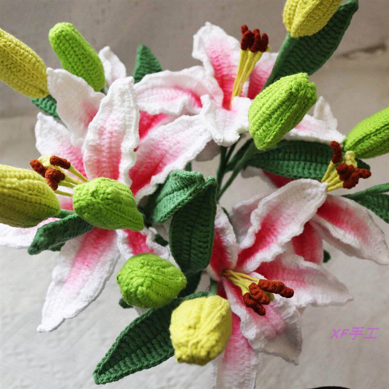 📚 成品手工毛线钩织仿真百合花假花摆件插花桌面家居客厅装饰花束