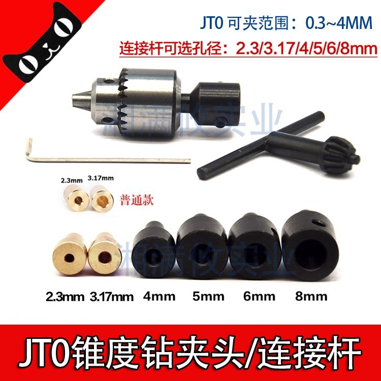 📚 高精度JT0锥度钻夹头/电机连接杆2.3/3.17/4/5/6/8MM钻台雕刻机