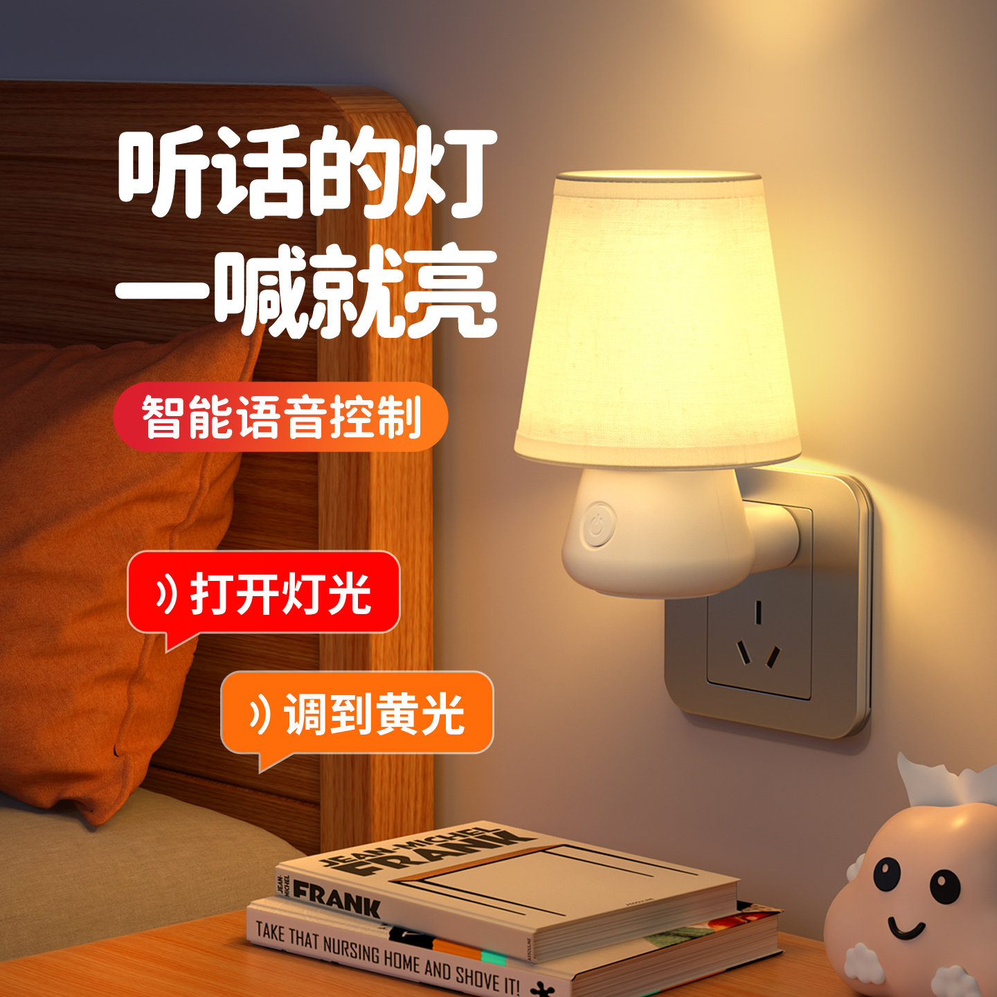 📚 插电节能小夜灯卧室睡眠灯儿童微光语音遥控开关护眼玩手机床头灯