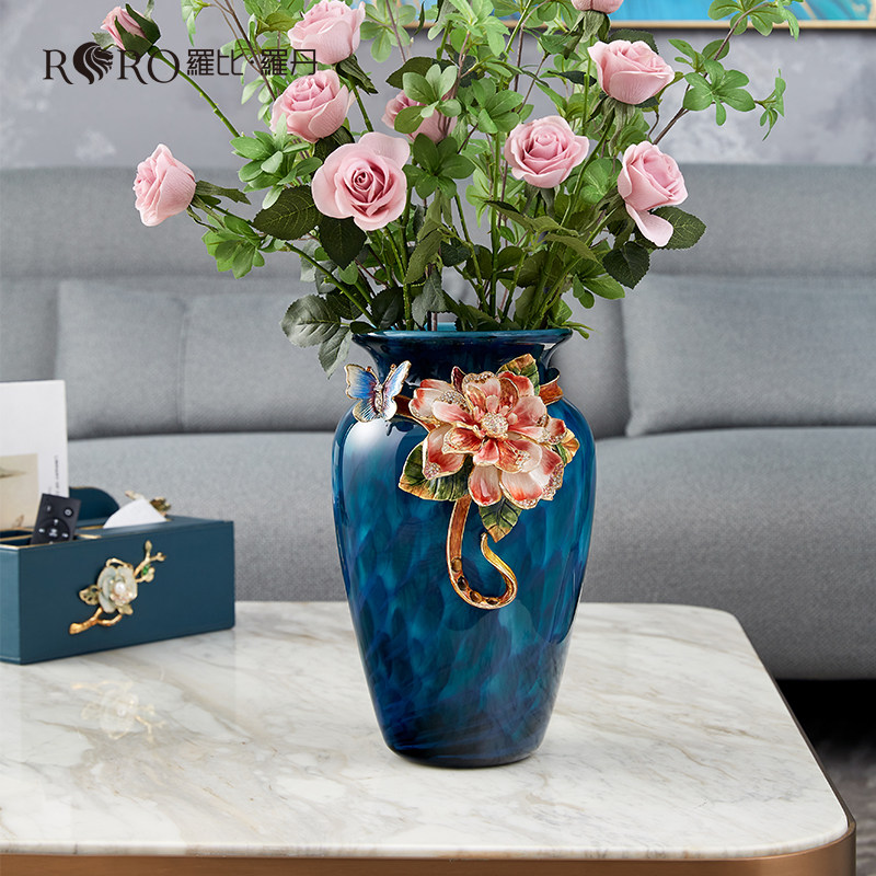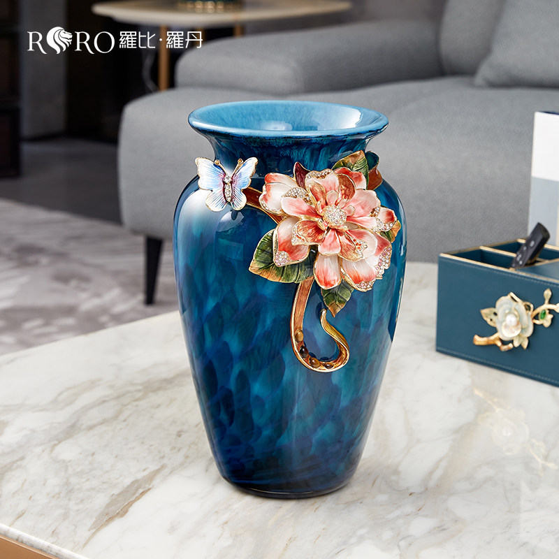 📚 罗比罗丹《绽放》花瓶小号蓝色珐琅彩工艺家居饰品摆件乔迁礼物