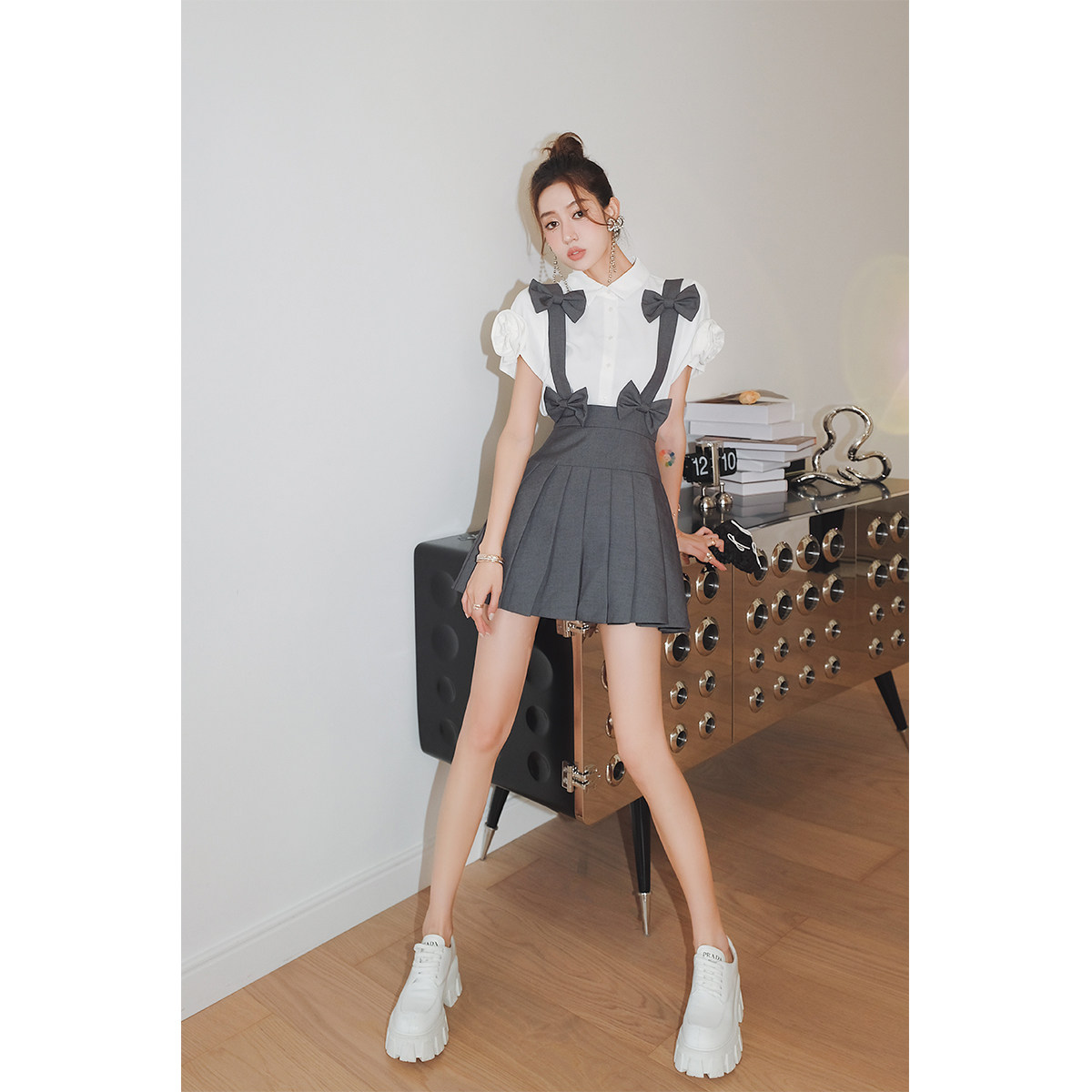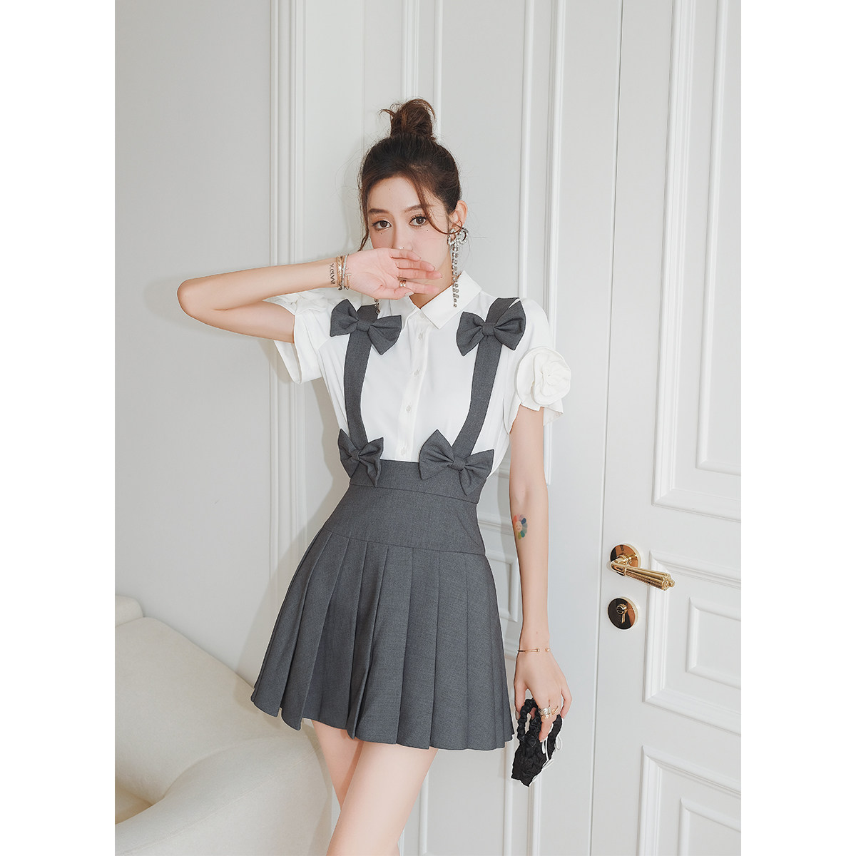 📚 MaisonWester2022夏季灰色背带百褶裙女夏日甜辣洒脱