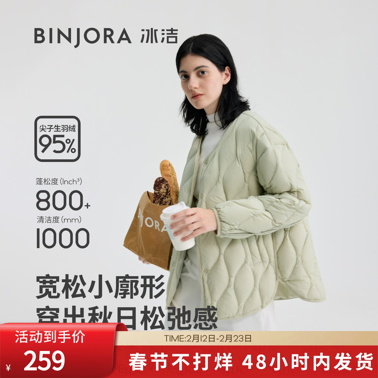 📚 BINJORA冰洁95绒女士短款轻薄羽绒服宽松廓形一手长轻盈保暖