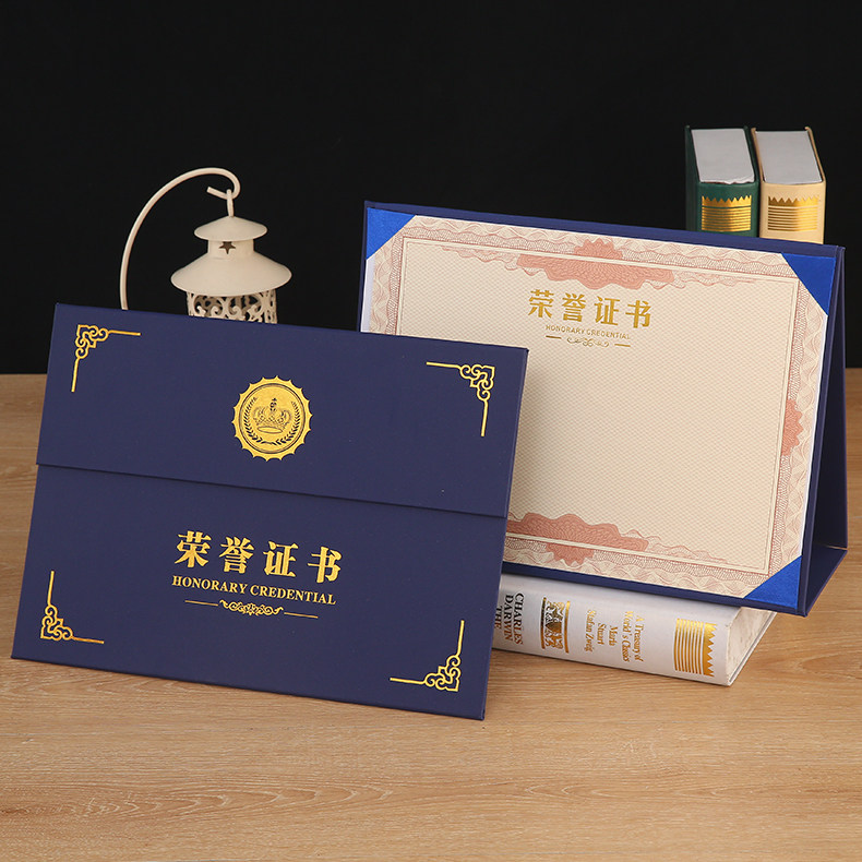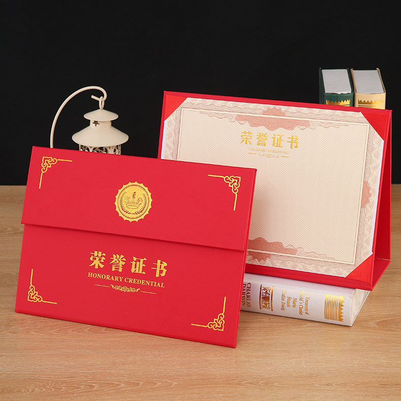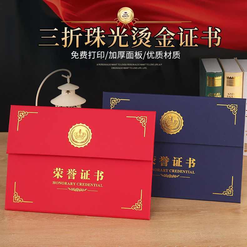 📚 高档A4荣誉证书三折式封套皮颁奖培训优秀员工获奖证书聘书结业授权证书书框奖状a4内芯纸定制打印烫金可摆台
