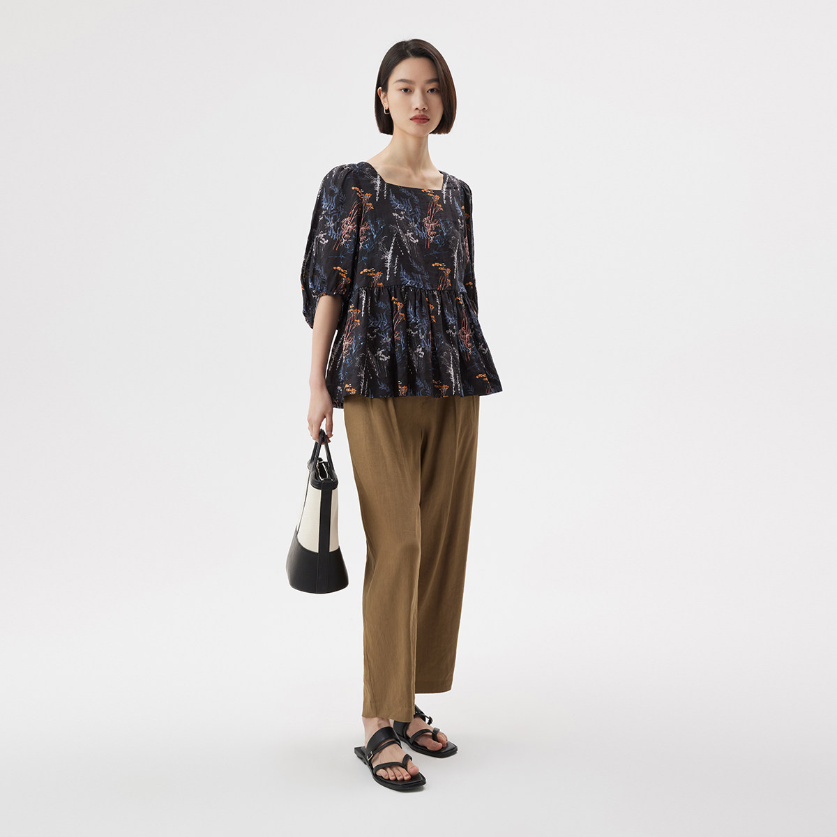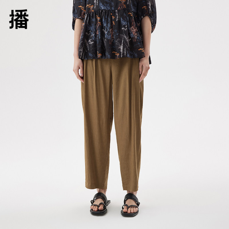 📚 播2023夏商场同款调节扣腰带韵律压褶晕染印花裤子女BDQ2KD1327