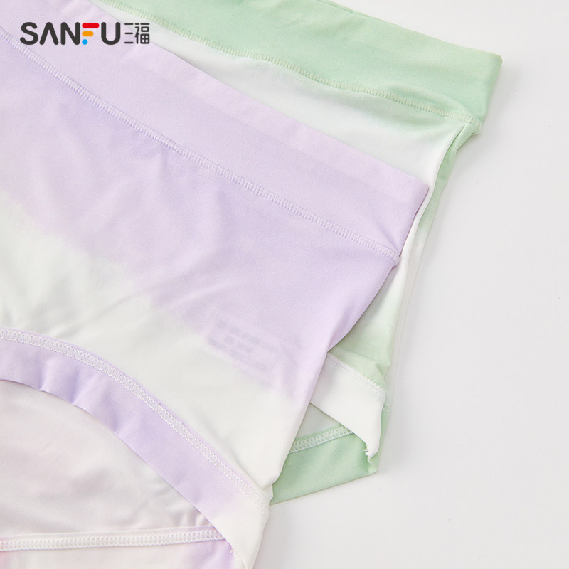 📚 三福 女中腰包臀内裤 清新满版印花轻薄纯棉底裆半平角裤473254