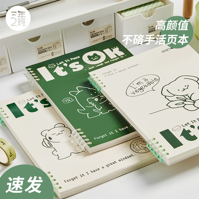 📚 三年二班B5不硌手活页本可爱高颜值简约高中生笔记本本子初中生可拆卸线圈本横线a5记事本大学生专用日记本厚