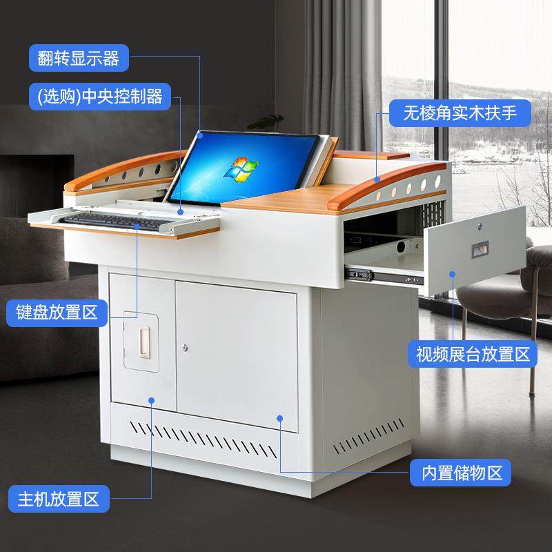 📚 学校教室多功能中控台教学自动翻转一体机演讲台钢制多媒体讲台