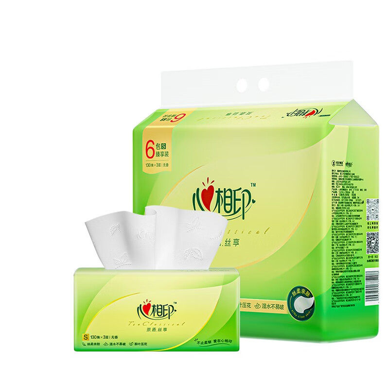 📚 心相印抽纸三层茶语纸巾130抽家用纸抽6包一提发包邮家庭实惠装