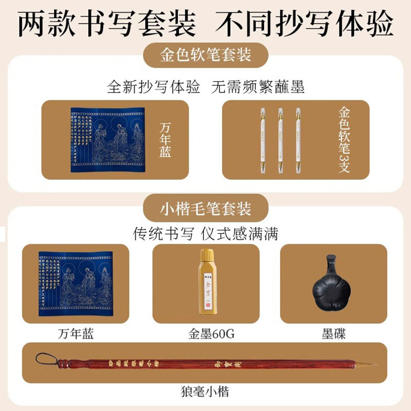 📚 万年蓝小楷毛笔临摹抄经本静心解压字帖经书抄写套装道德经软笔练字帖书法金刚手抄经纸经文地藏经专用作品纸