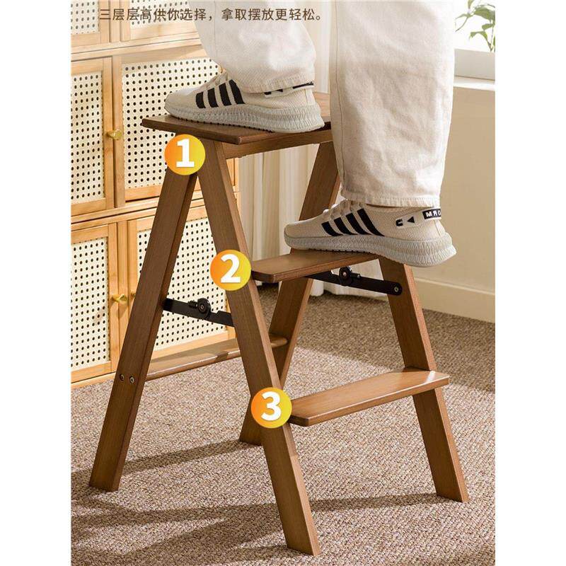 📚 多功能三步梯厨房家用登高稳步脚踏梯子梯凳可折叠两用实木人字梯
