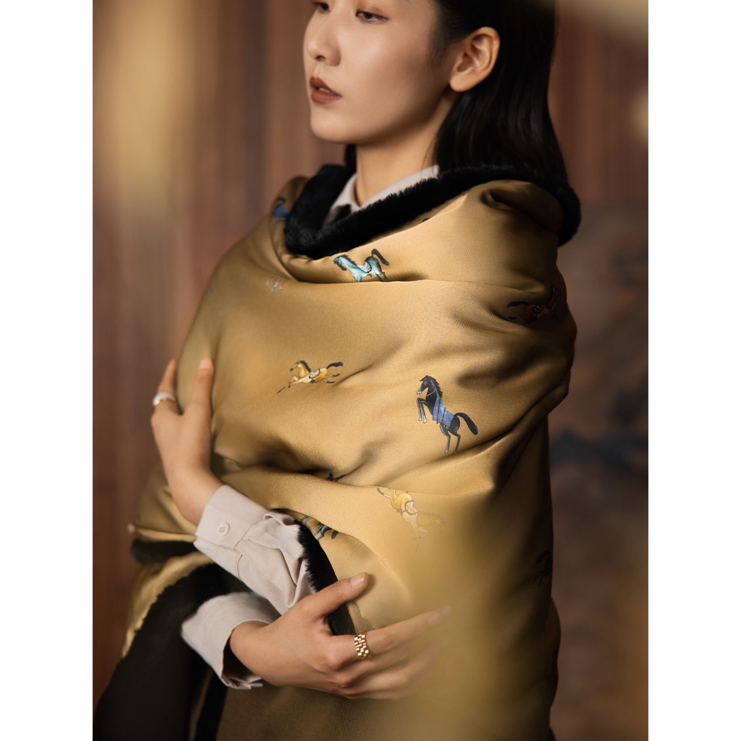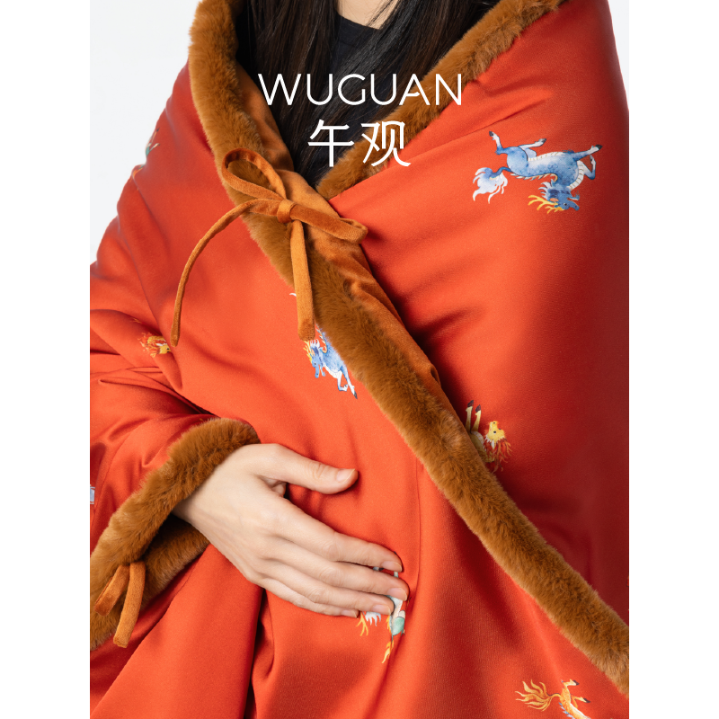 📚 午观『木兰』盖毯办公室午睡沙发毯子醋酸围巾马年新年中式披肩毯