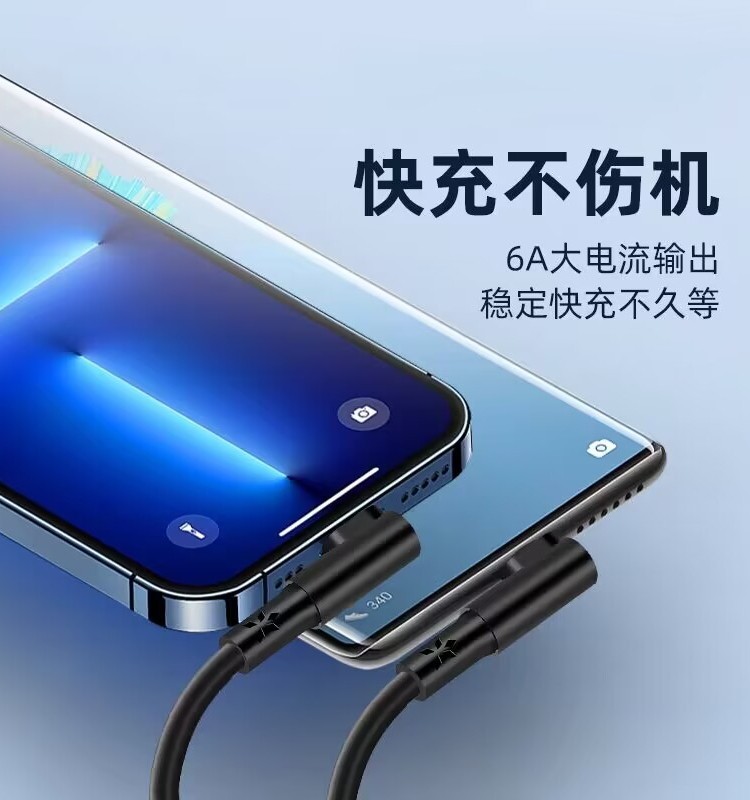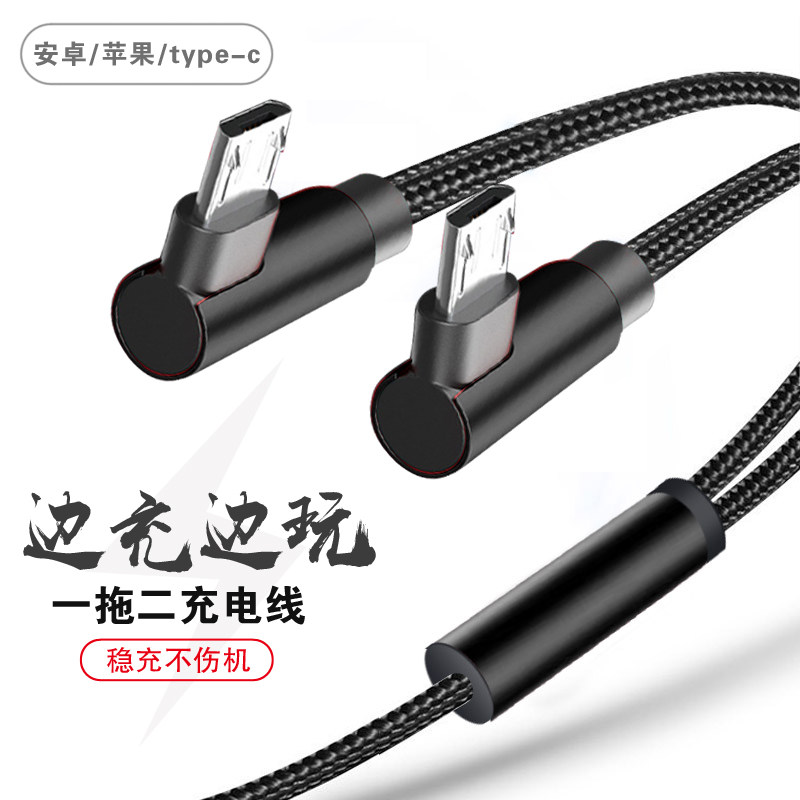📚 双弯头type-c安卓数据线一拖二充电线usb手机传输快充线二合一数据线车载导航手游充电器充满适用华为vivo