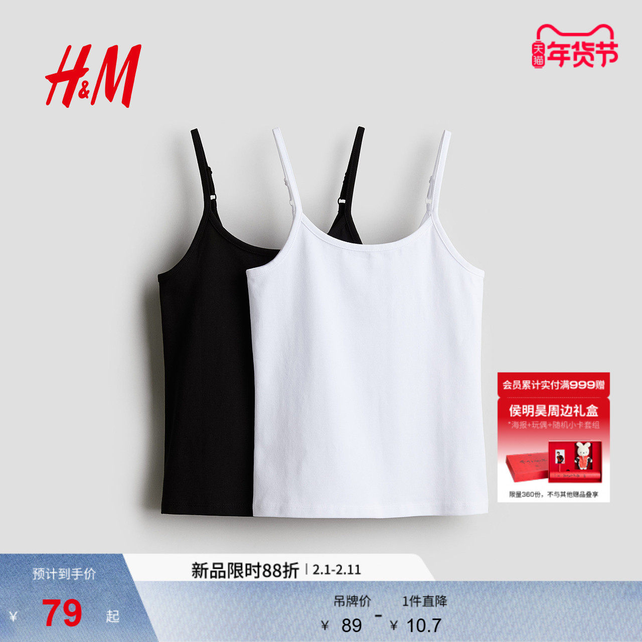38¥ CZ193 PykNUO7pGv6¥ https://m.tb.cn/h.7wHCIxB HM女童背心春季柔软舒适童装儿童2件装棉质吊带衫1241630 --------------------- 【原售价】89元 【现售价】89元。