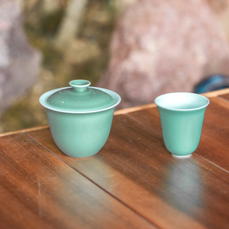 📚 稀雀 沧浪青绿盖碗 主人杯 素和 景德镇 高温 颜色釉 纯手工