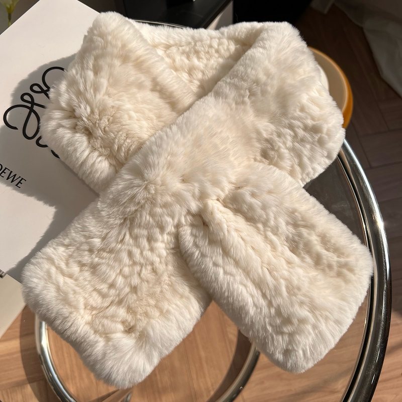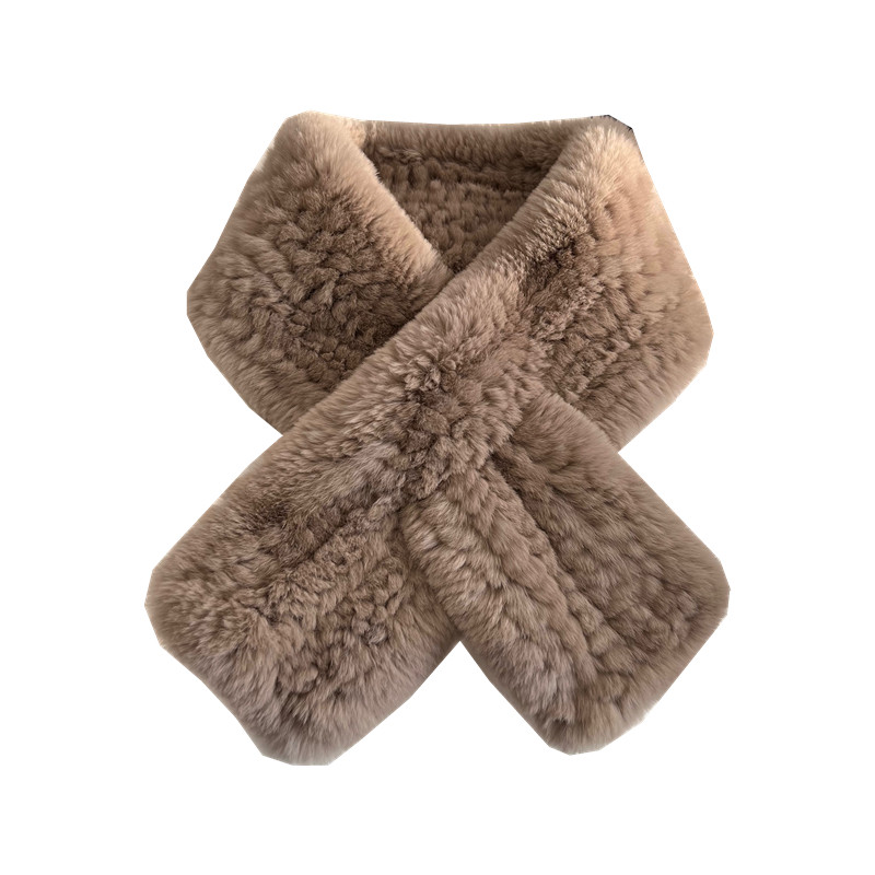 📚 真獭兔毛围巾韩版简约长款毛绒编制毛毛围脖保暖加厚冬季百搭女