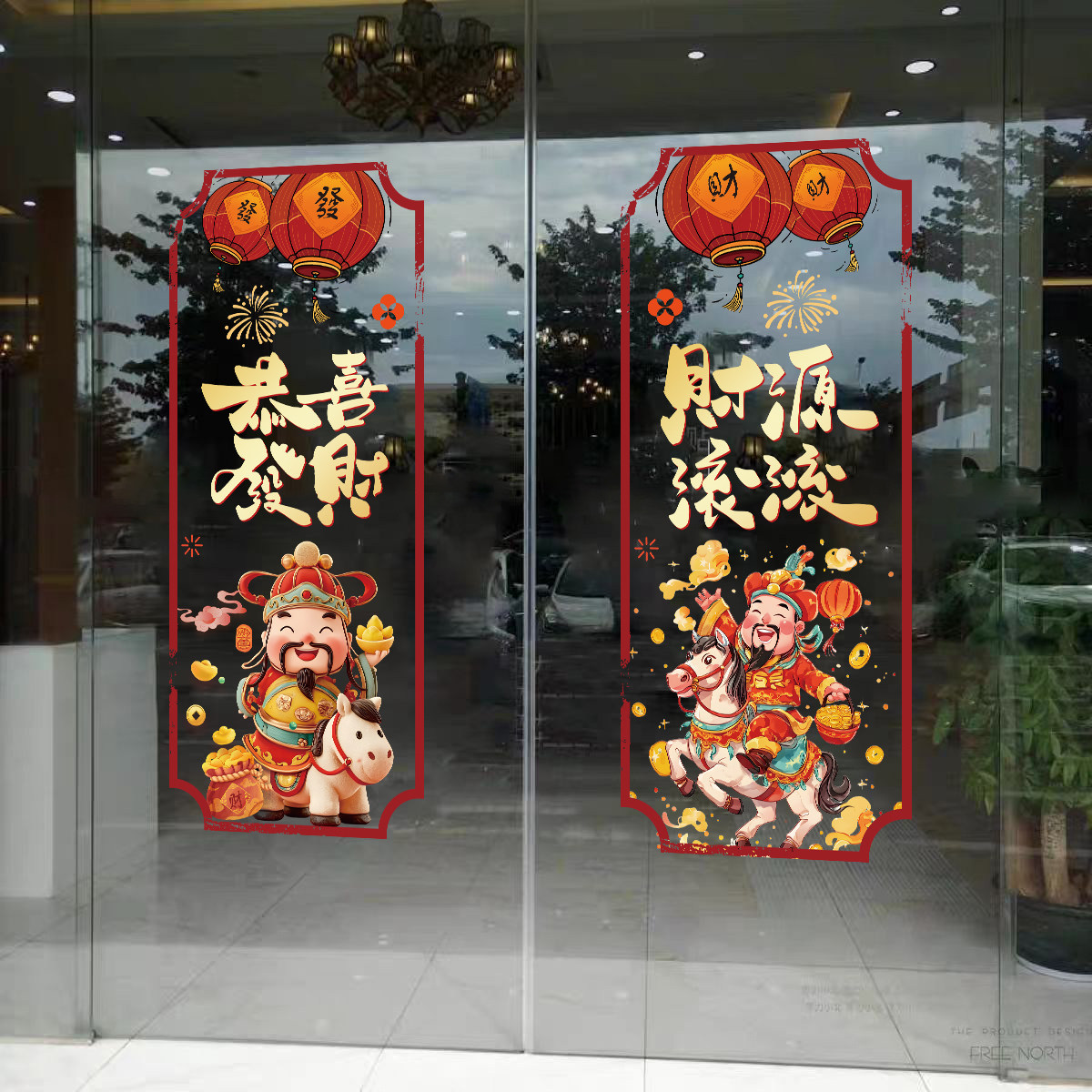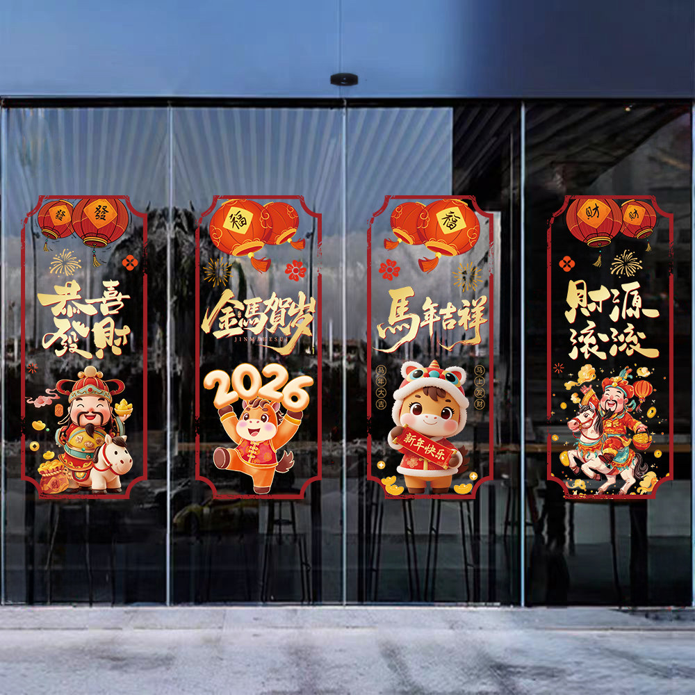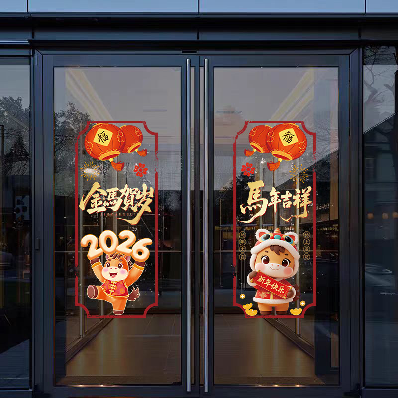 📚 2026马年春节玻璃门静电贴公司办公室写字楼店面元旦布置对联窗花