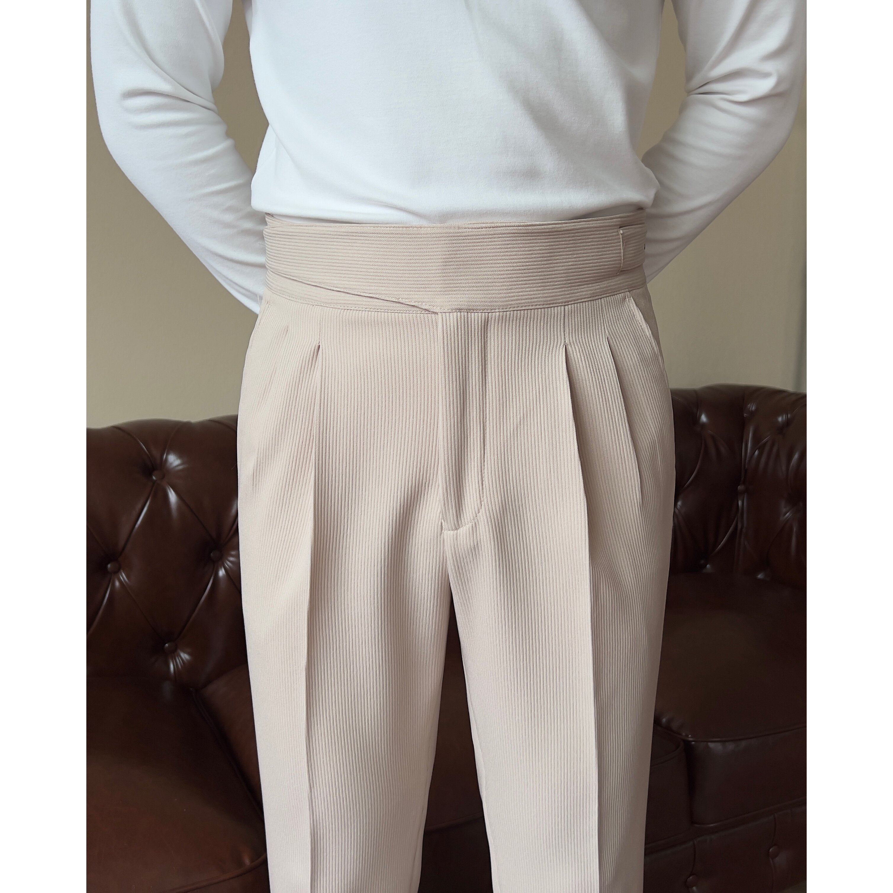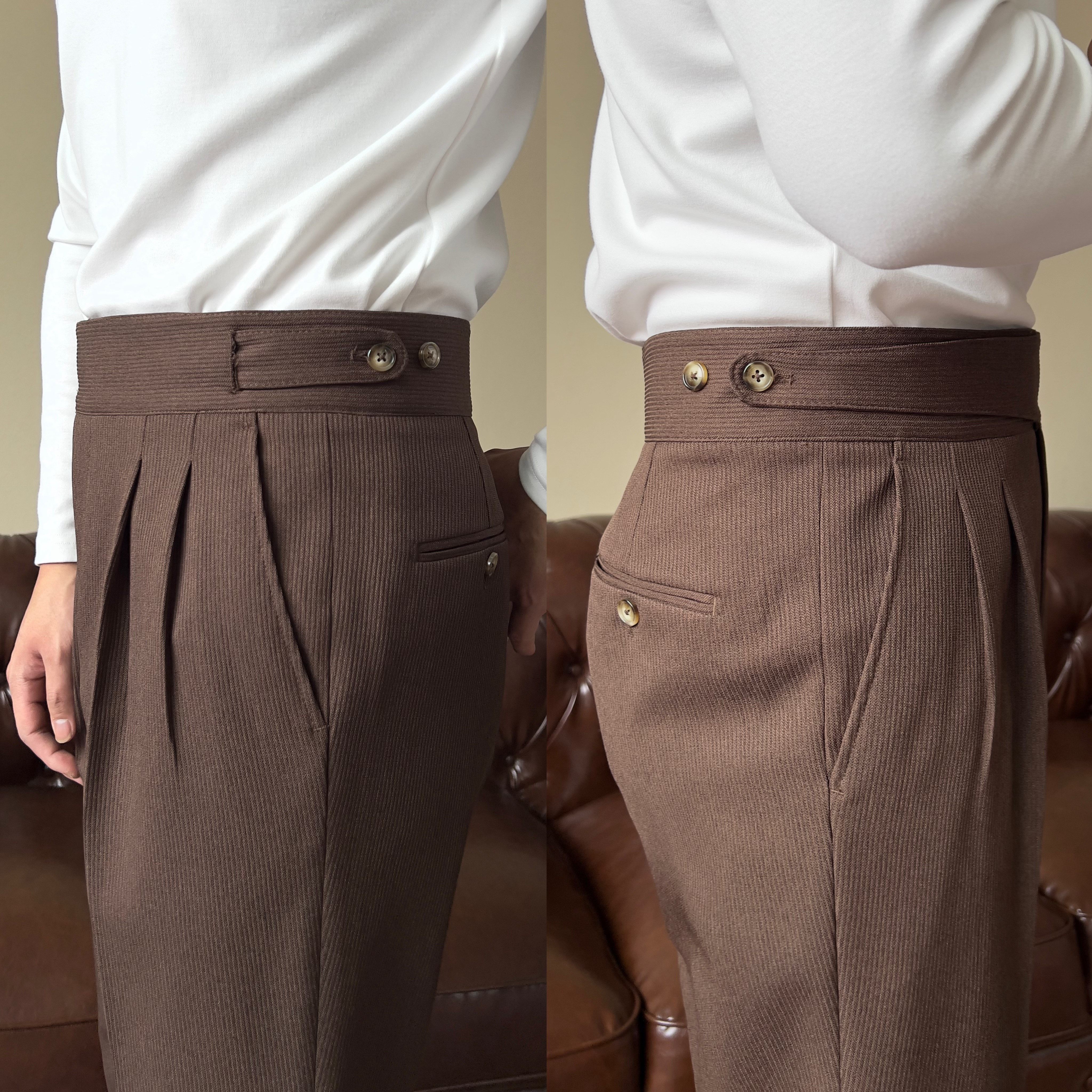 📚 新款轻奢百搭男士意式纽扣款廓尔喀高腰显腿长西裤-661长裤