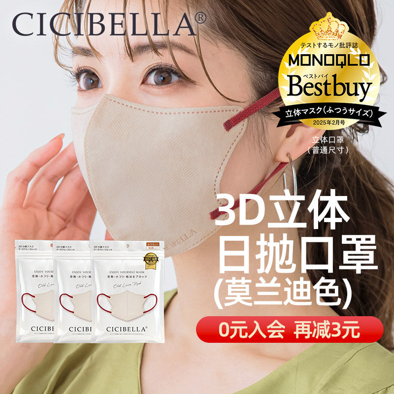 📚 【3袋装】CICIBELLA日本进口3D口罩塑颜莫兰迪色一次性高颜值日抛