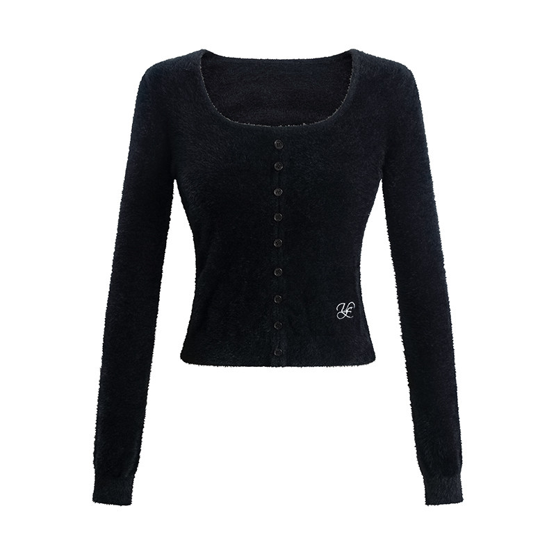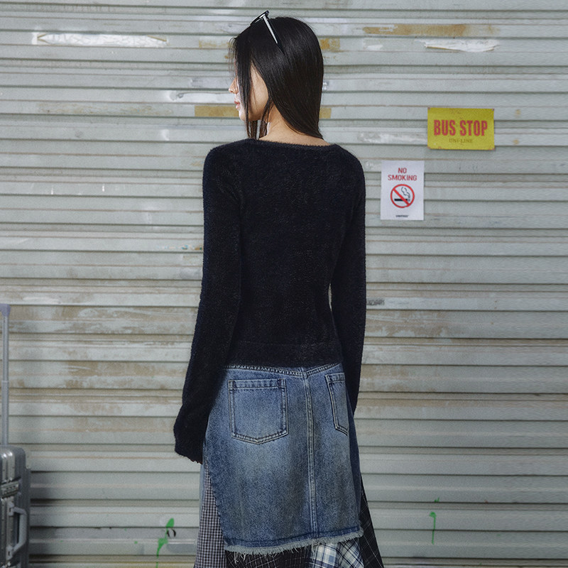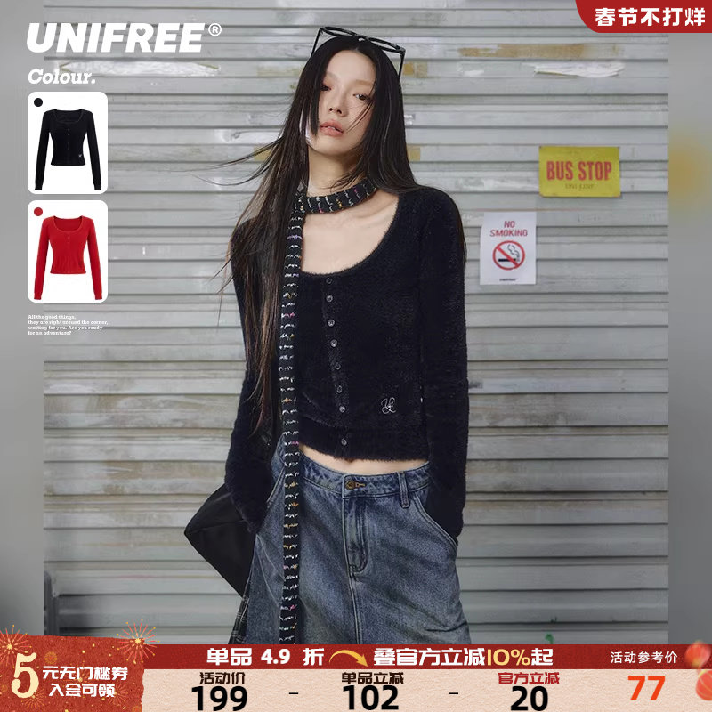📚 UNIFREE水貂毛针织衫女秋季u领美式复古辣妹修身显瘦软糯百搭毛衣