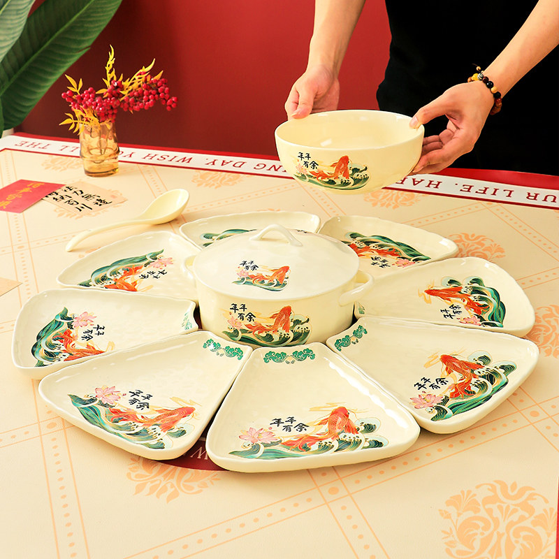 📚 团圆饭拼盘餐具组合盘子菜盘家用2026新款年夜饭碗盘套装新年碗碟
