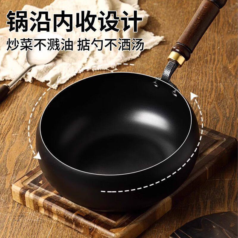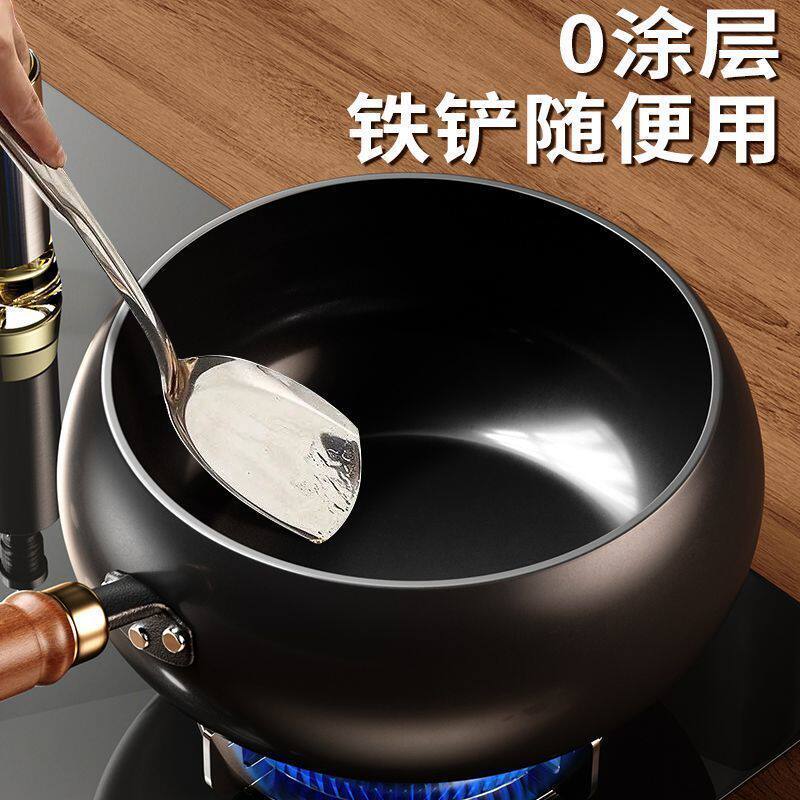 📚 【正品章丘大肚锅】手工铁锅家用精铁炒菜锅无涂层平底不粘锅炒锅