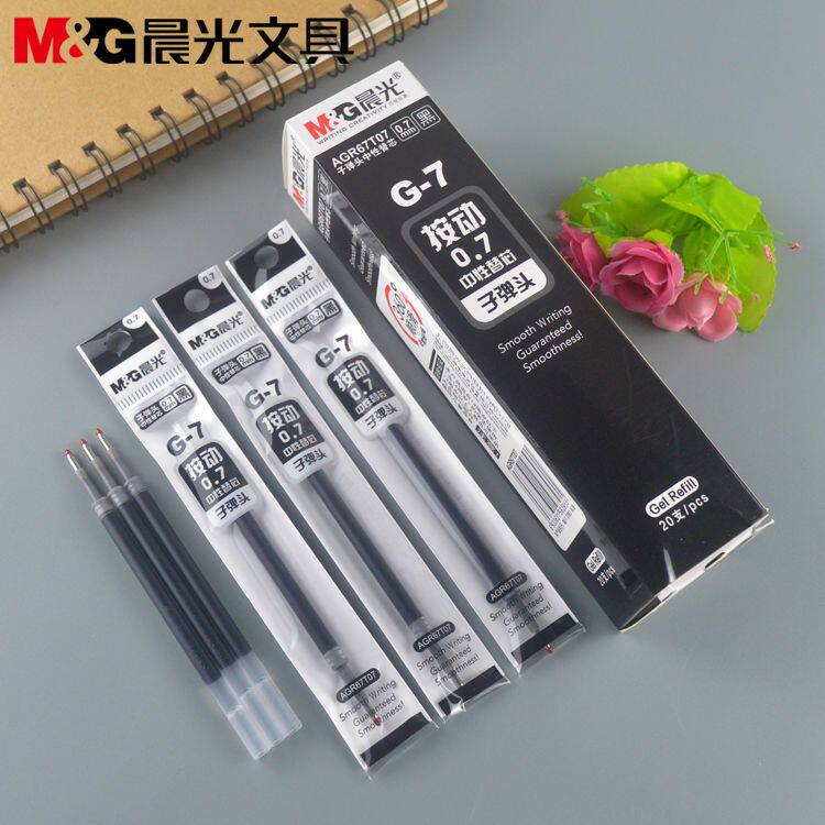 📚 晨光0.7mm按动笔芯G-7中性替芯子弹头水笔芯AGR67T07黑色 红色