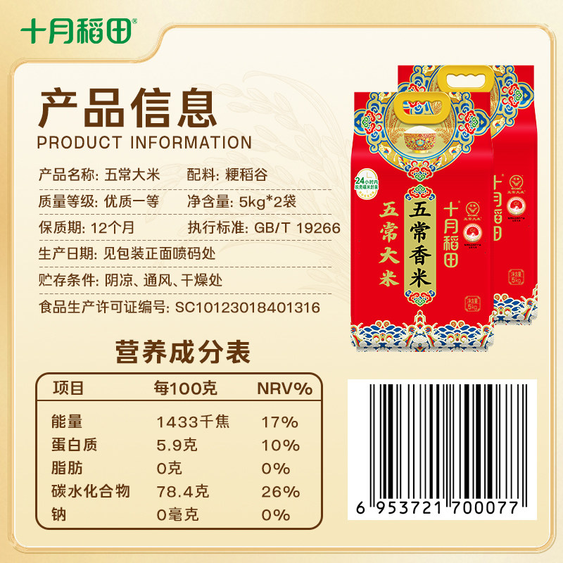 📚 【2025年新米】十月稻田五常香米5kg*2袋东北五常大米年货送礼