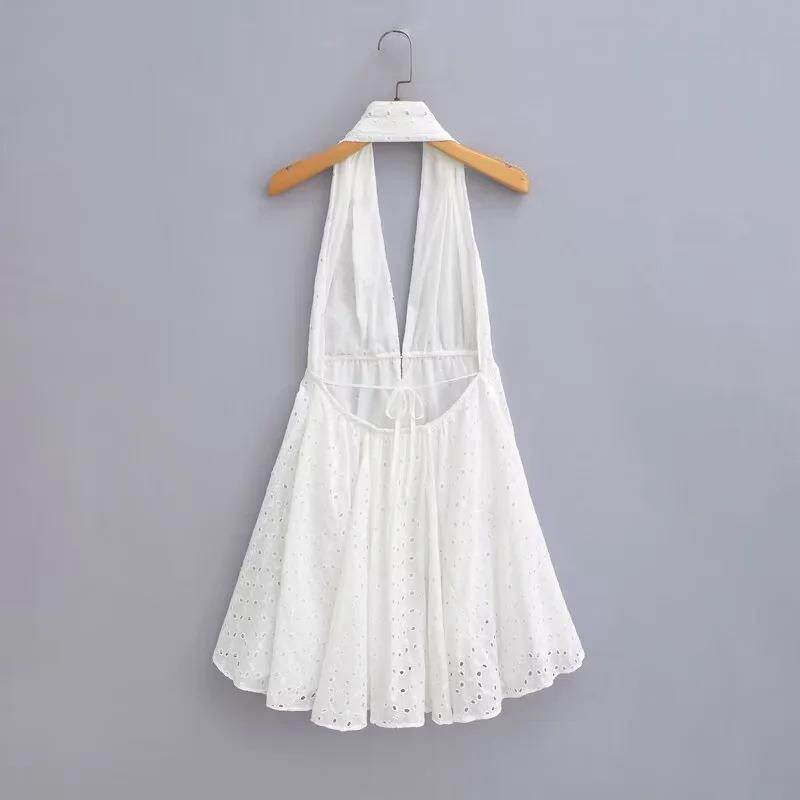 79¥ HU926 6hRbUPzztq1¥ https://m.tb.cn/h.7FxE4XJ Fashionable women's hollow embroidery halter neck dress --------------------- 【原售价】130元 【现售价】130元。