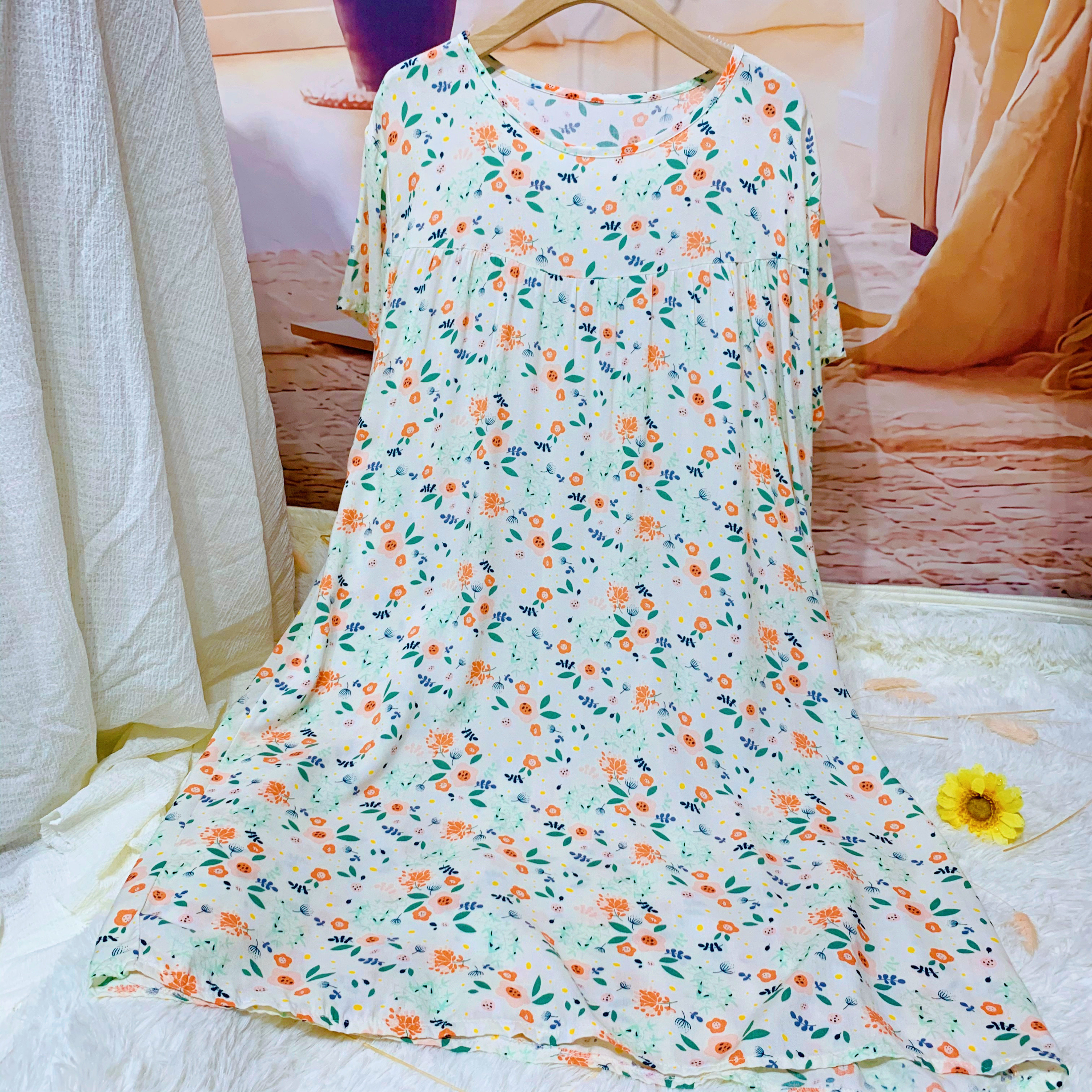 📚 夏季新款棉绸宽松睡裙女睡衣人造棉连衣裙中长款大码家居服休闲装
