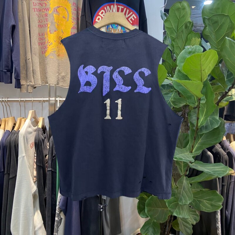 📚 档口实拍 美式复古骷髅数字11印花背心男女宽松洗水做旧坎肩潮牌