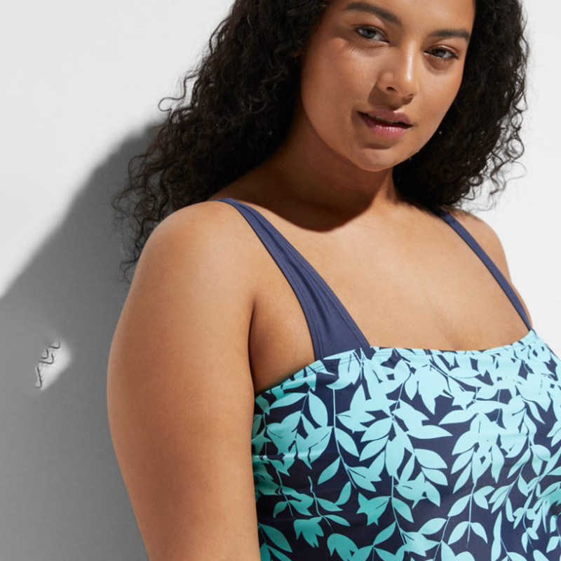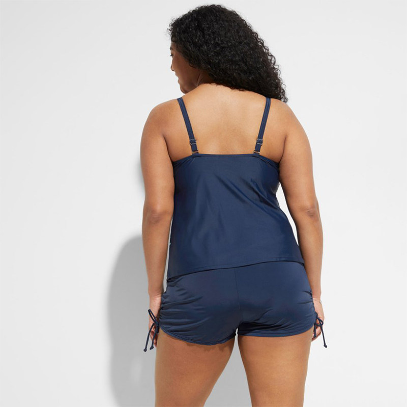 📚 欧美加大码坦基尼背心游泳衣女特大分体保守平角显瘦跨境Tankini