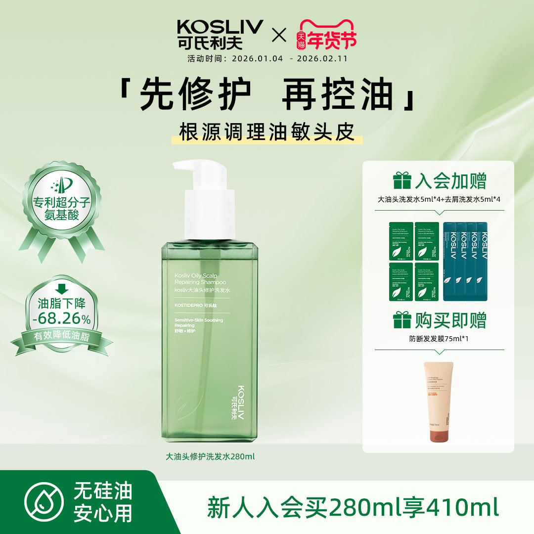 📚 可氏利夫kosliv大油头洗发水露长效控油蓬松去屑止痒细软塌无硅油