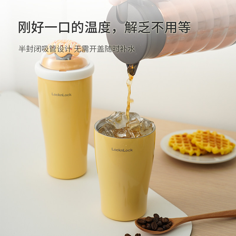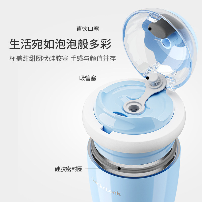 📚 乐扣乐扣泡泡保温杯女吸管咖啡杯316不锈钢水杯高颜值办公室情侣