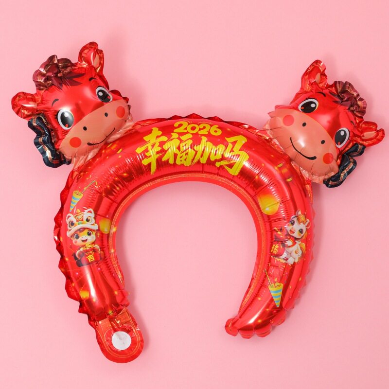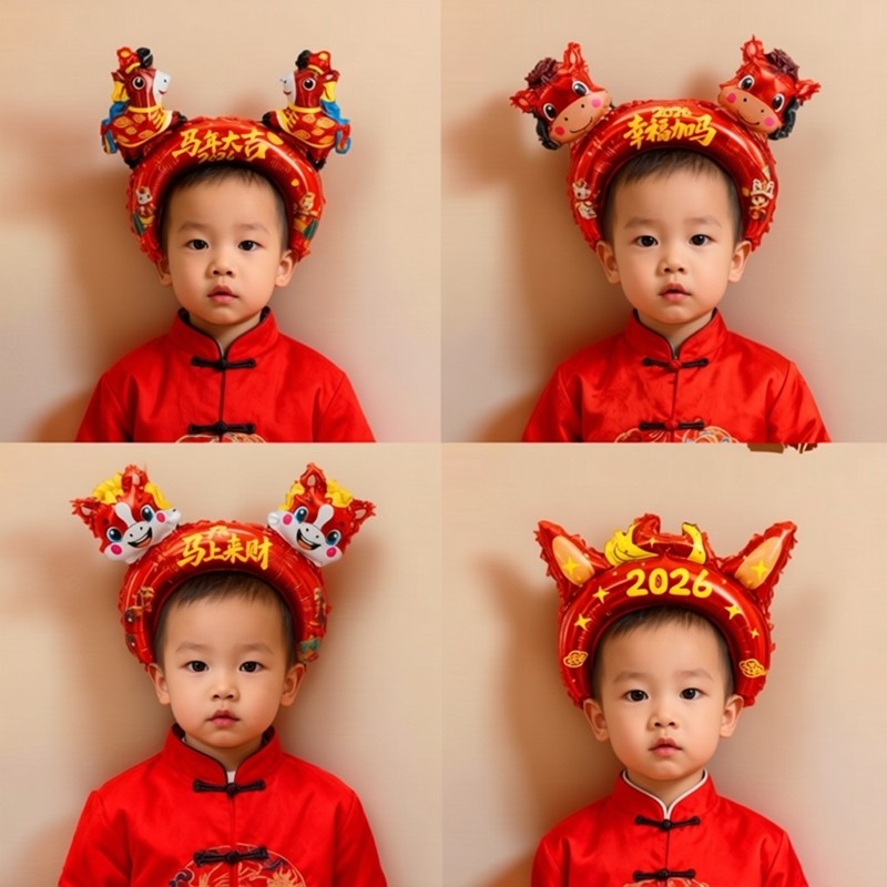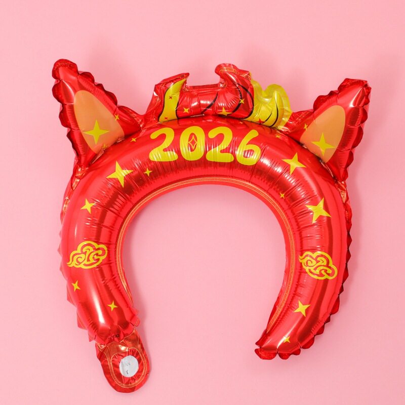 📚 2026新年红色头饰发箍气球幼儿园班级布置装饰手持棒马年头箍气球