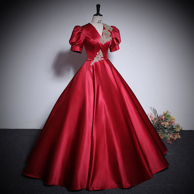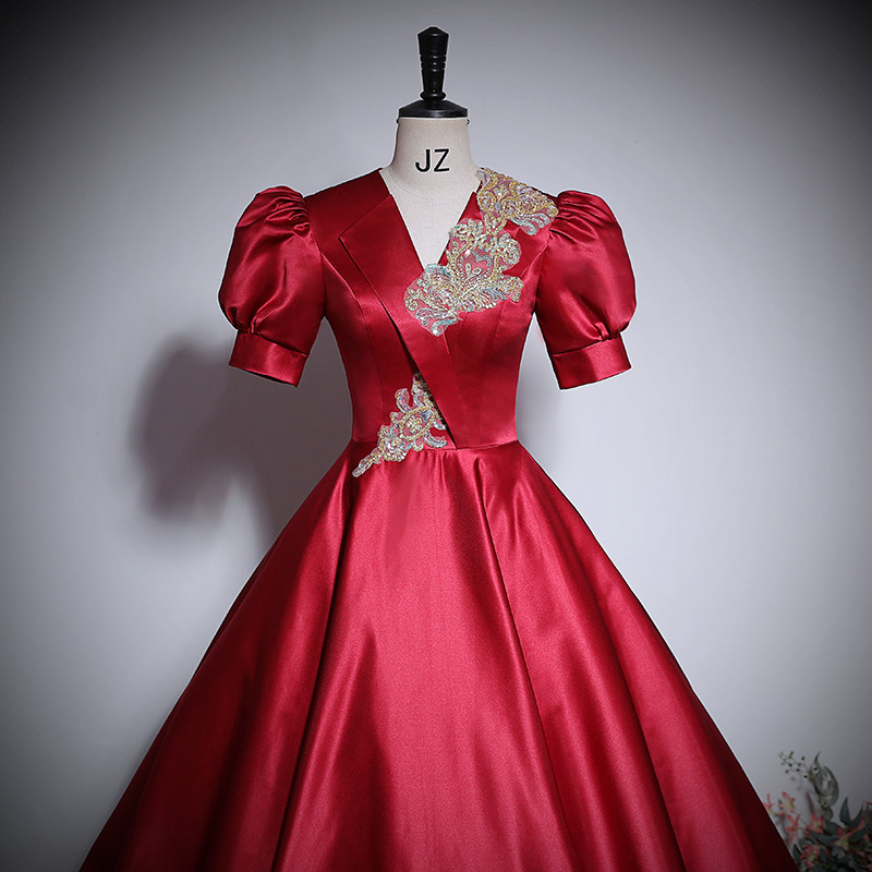 📚 晚礼服女酒红色演出服高端大气高级感缎面主持人美声独唱声乐艺考