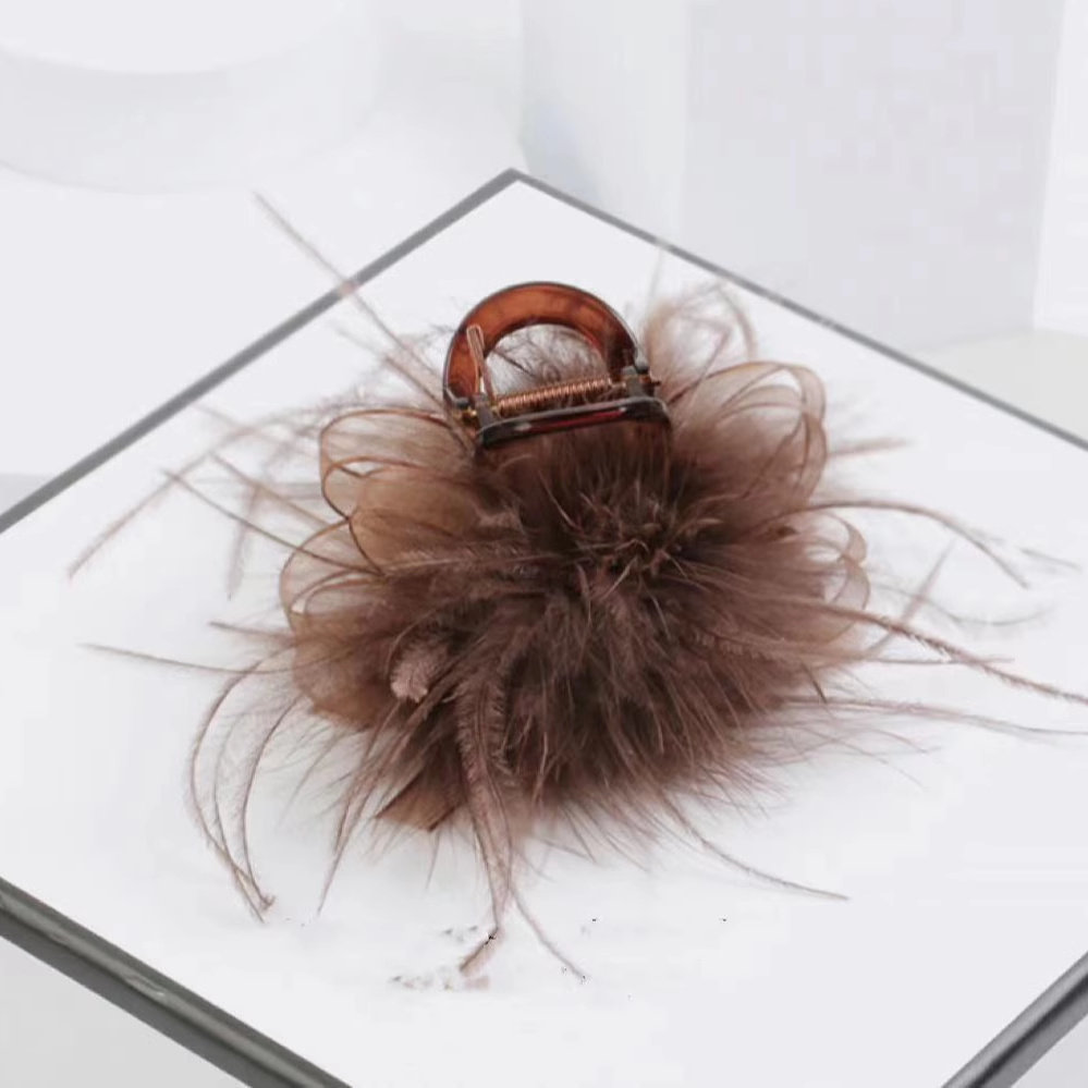 📚 不掉毛高马尾羽毛抓夹固定神器2024新款高级感后脑勺半扎发发夹女