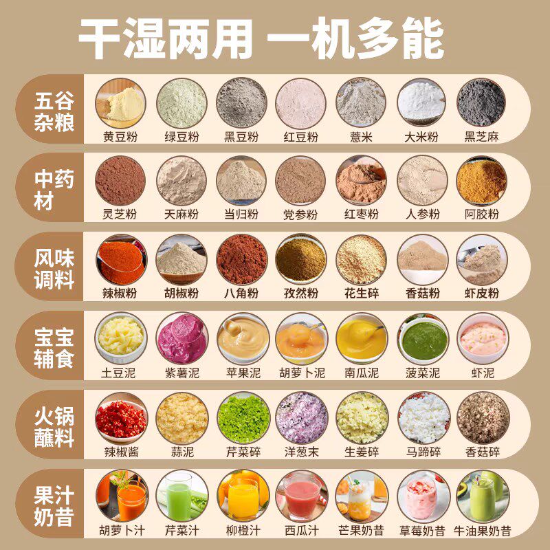 📚 干湿两用研磨机五谷杂粮磨粉机粉碎机中药材打粉机破壁机辣椒芝麻