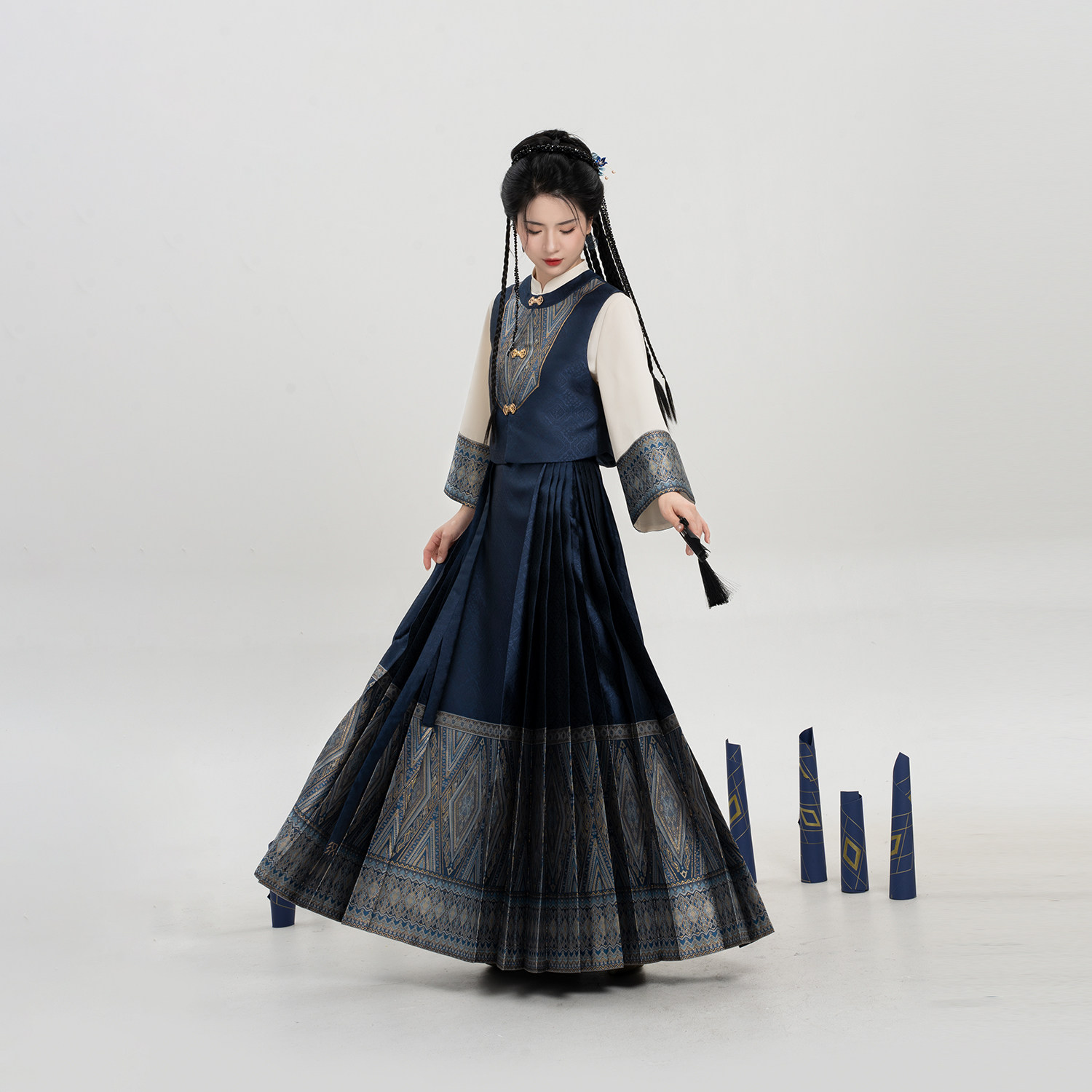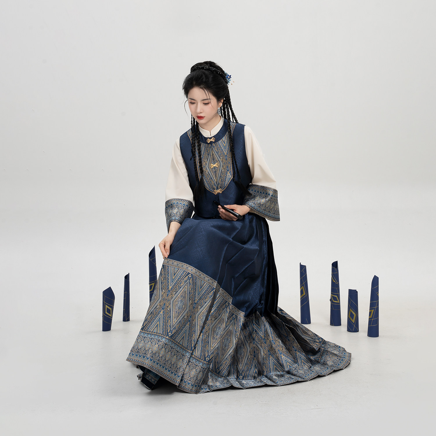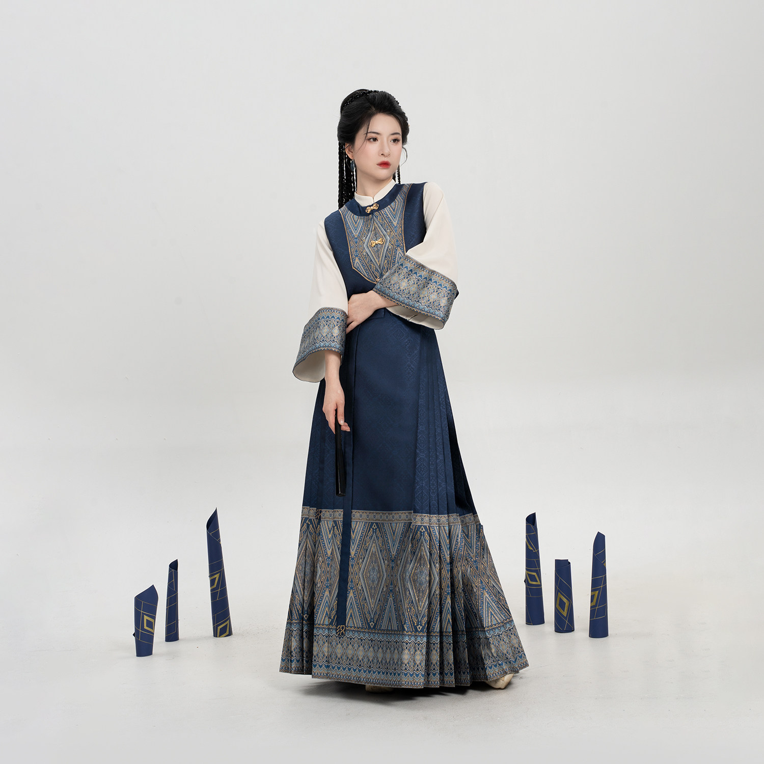 📚 织造司[花青]侗族对鸟纹明制仿妆花马面裙汉服女对襟比甲立领上衣