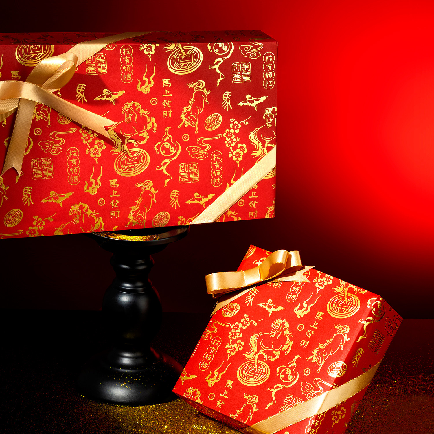 📚 「马上发财」高档烫金红色新年礼物包装纸大尺寸本命年马年春节喜庆结婚生日礼盒礼品纸高级花束打包丝带彩纸