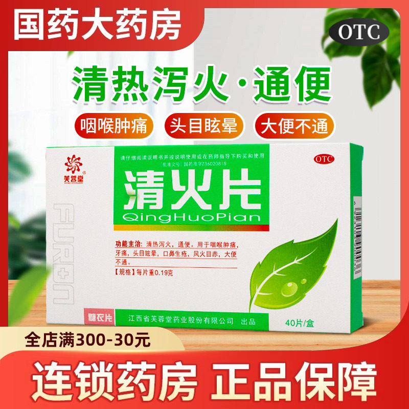 📚 芙蓉堂清火片40片清热泻火通便咽喉肿痛牙痛头晕目眩便秘口鼻生疮