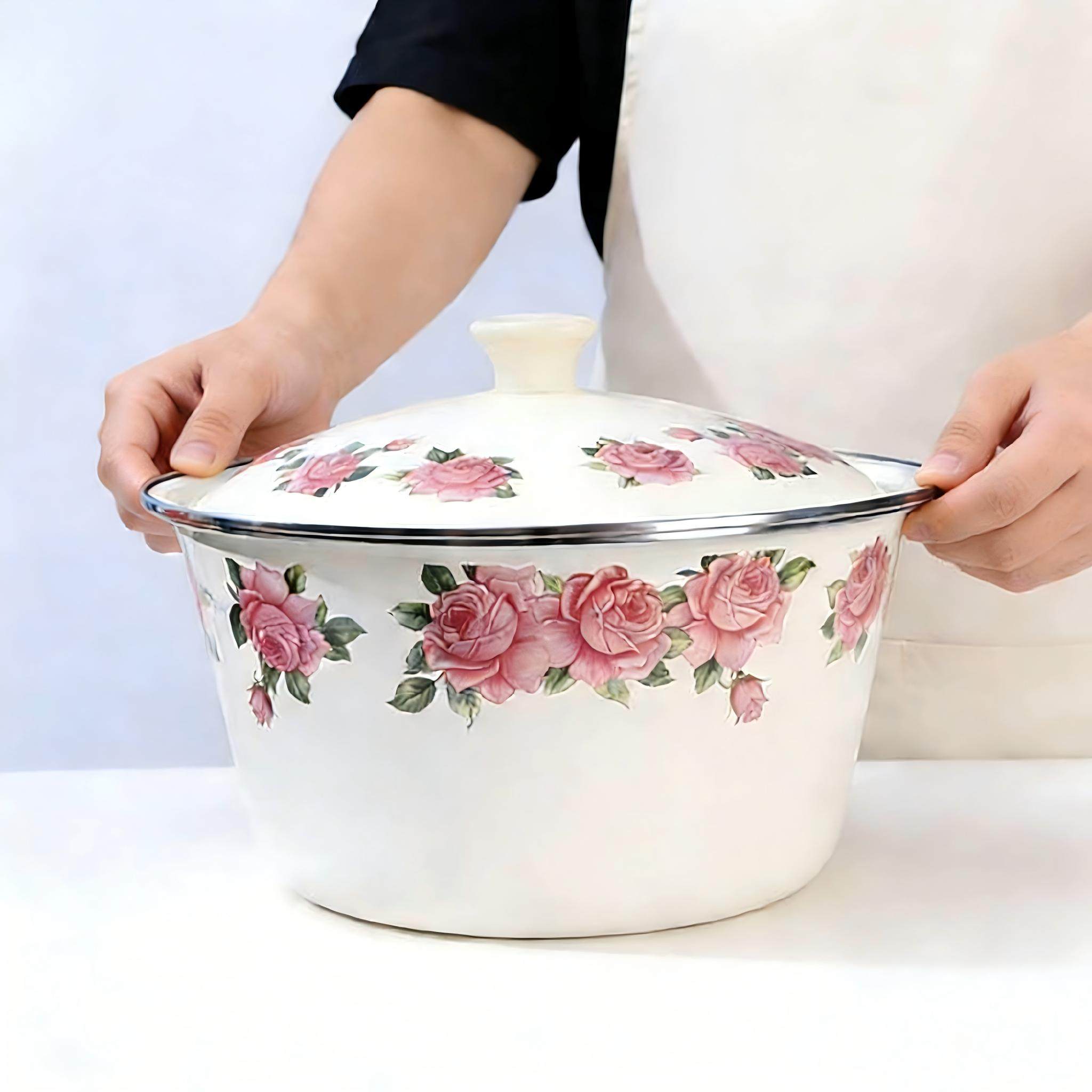 📚 加厚搪瓷碗盖碗盖盆汤盆搪瓷碗搪瓷盆汤碗猪油盆中药碗瓦盆和面盆