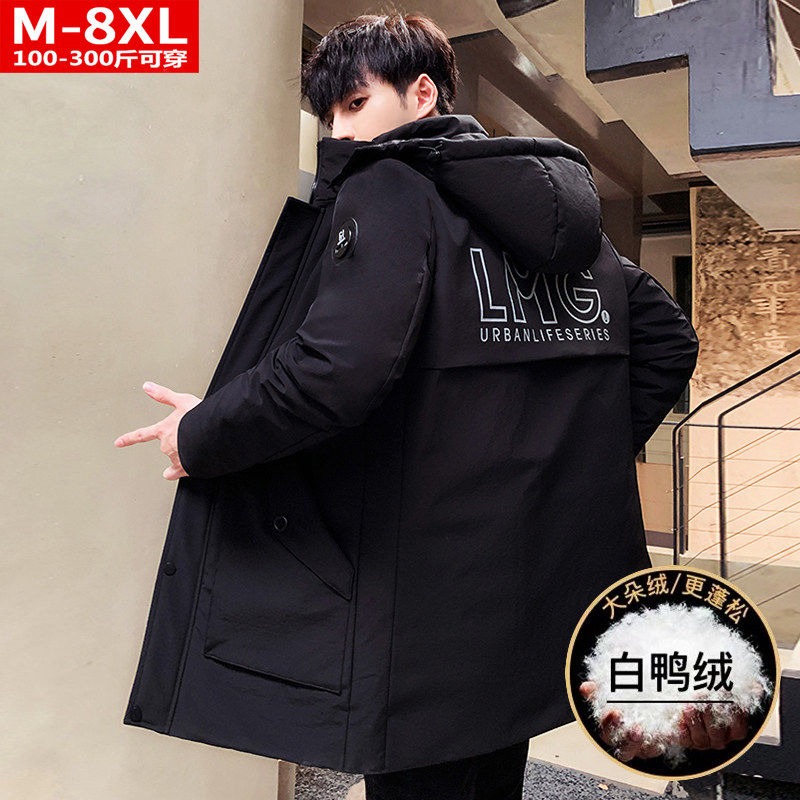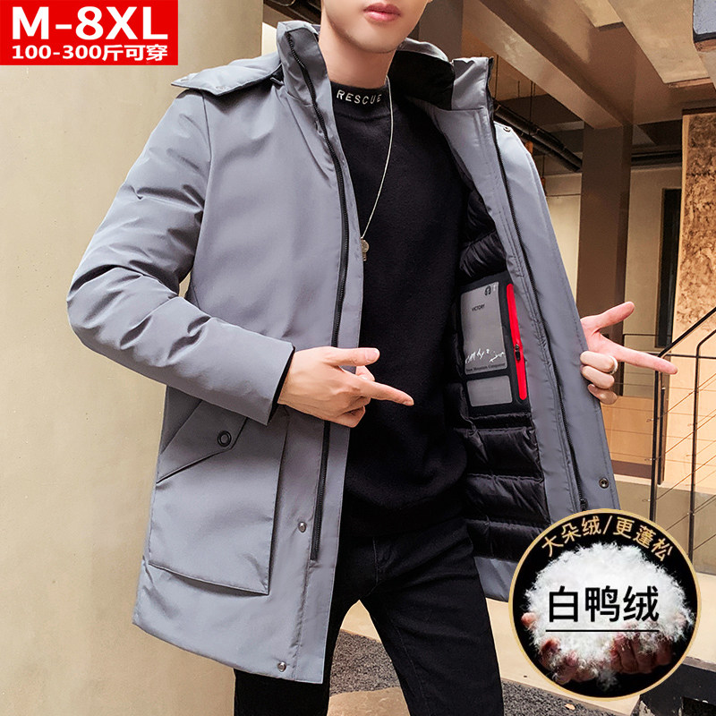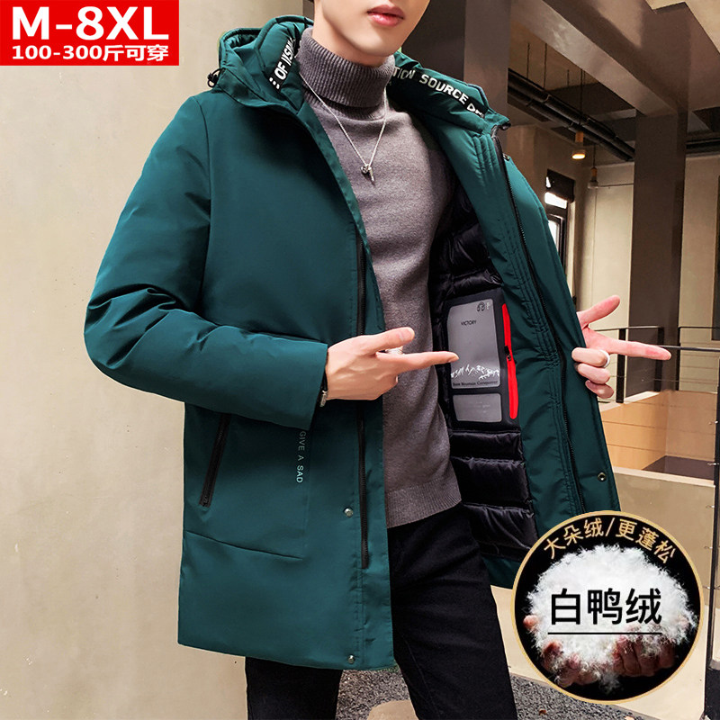 📚 冬季潮流品质男装中长款羽绒服胖加肥加大码宽松抗寒保暖连帽外套