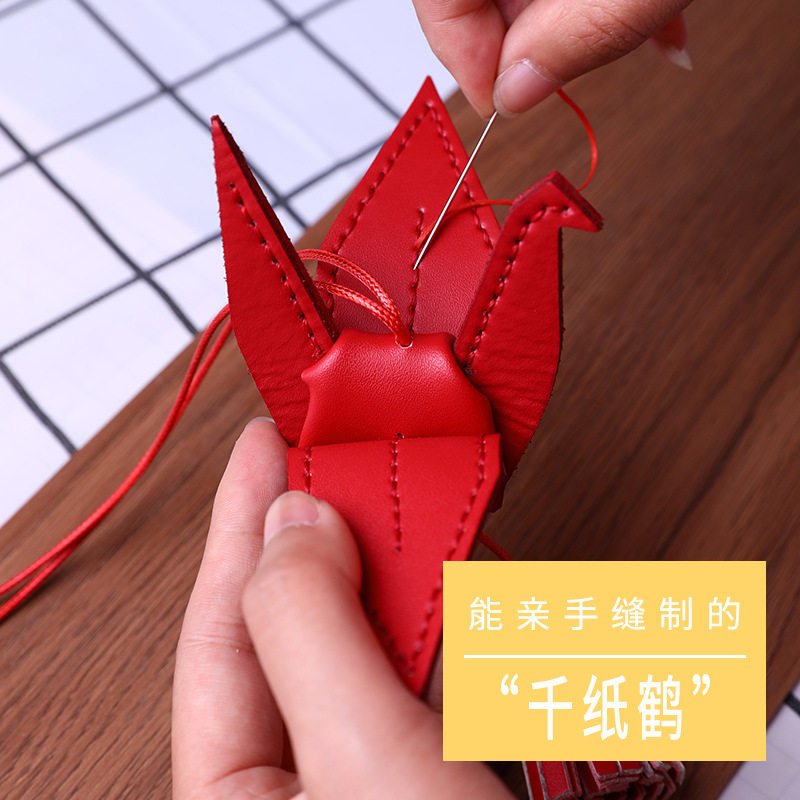 📚 千纸鹤车挂手工diy材料包汽车平安符车内皮质挂件车载挂饰后视镜