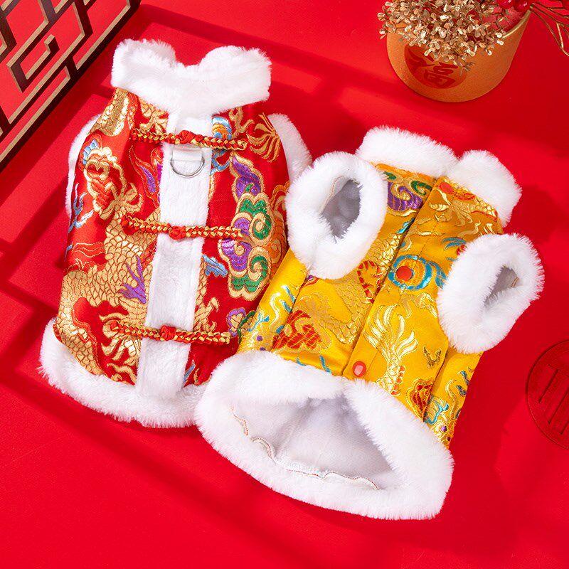 📚 速发猫新衣服冬季保暖棉龙布偶蓝猫幼小猫防掉毛咪年喜庆衣袍