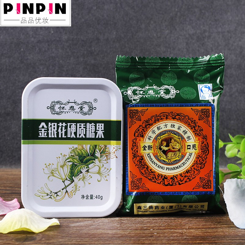 📚 怀恩堂金银花润喉糖硬质糖果20片铁盒解咽干痒护咽喉含片正品包邮