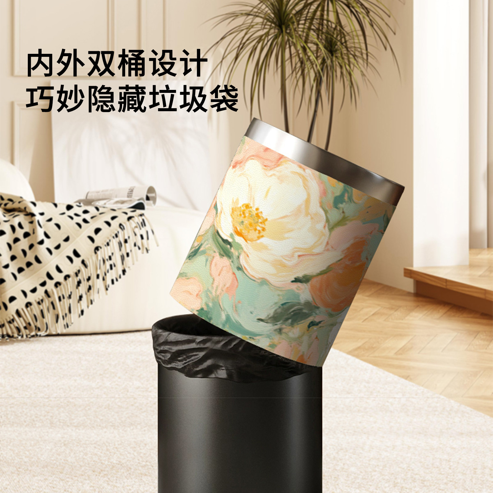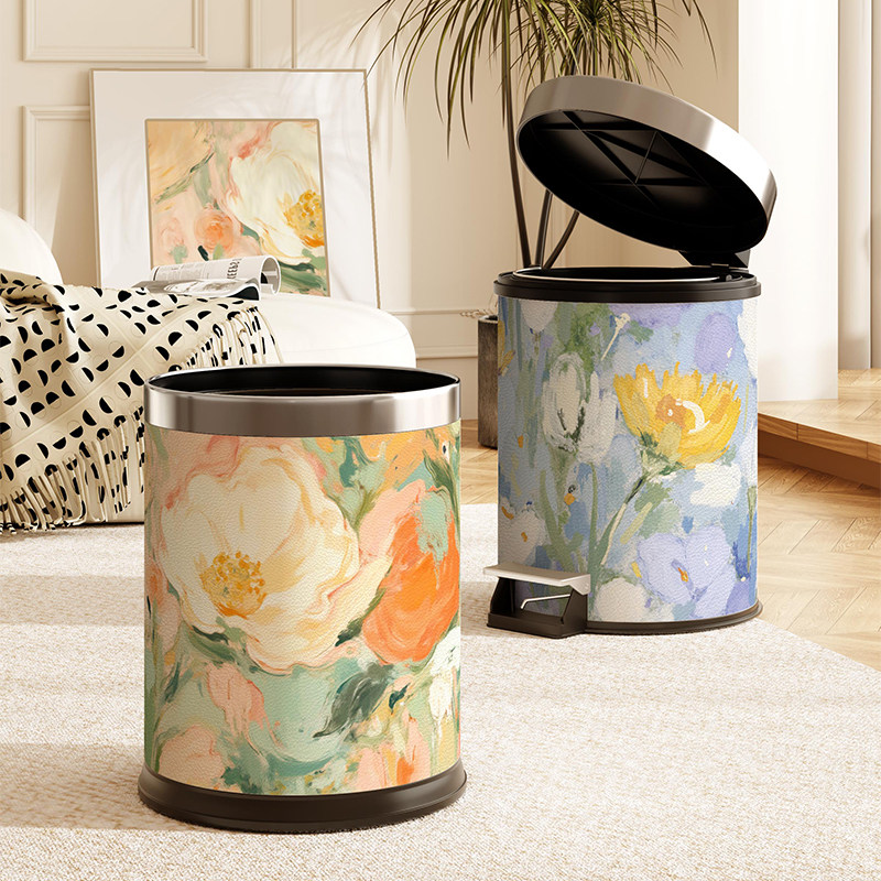 📚 芊芊郡主油画风花卉高颜值家用客厅卧室垃圾桶大号大容量双层脚踏
